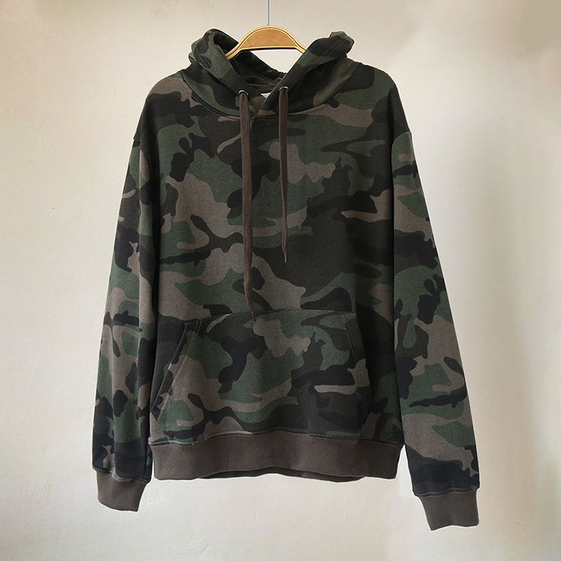 Spring And Autumn Pure Cotton Terry Plus Size Loose Pullover Hooded Long Sleeves Camouflage Sweater Women