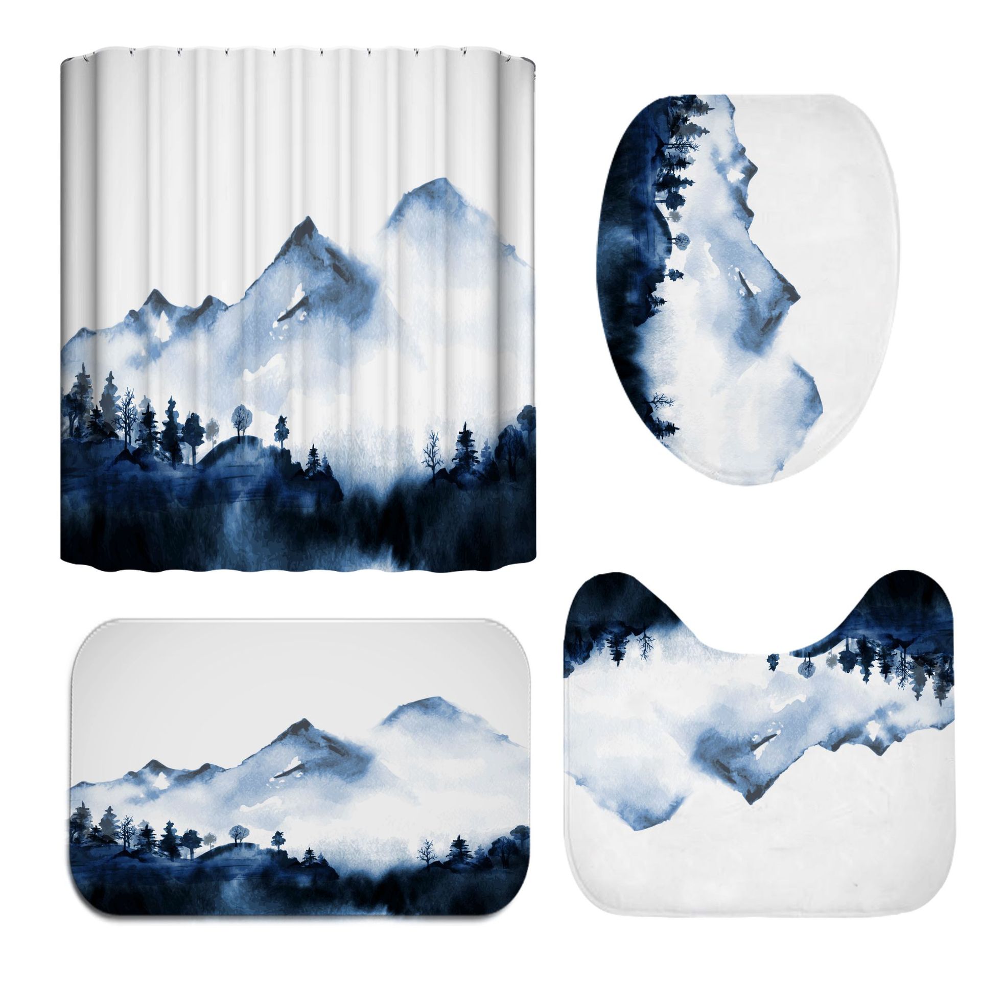 Digital Printing Polyester Bathroom Supplies Chinese Landscape Painting