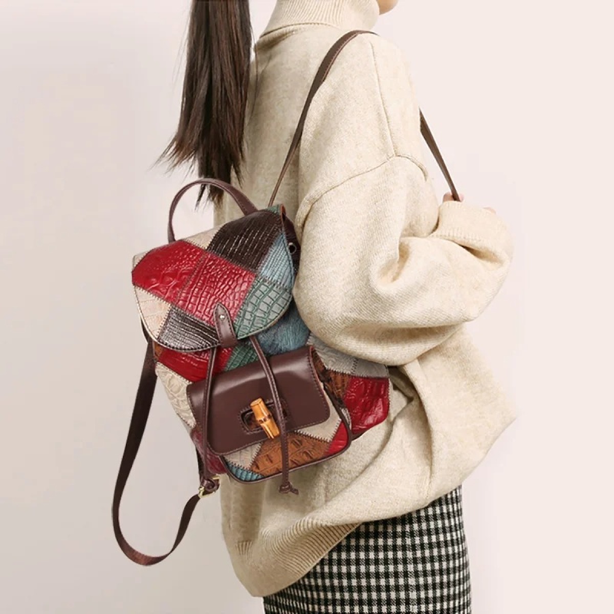 Women's Drawstring Fashionable Travel Leather Backpack