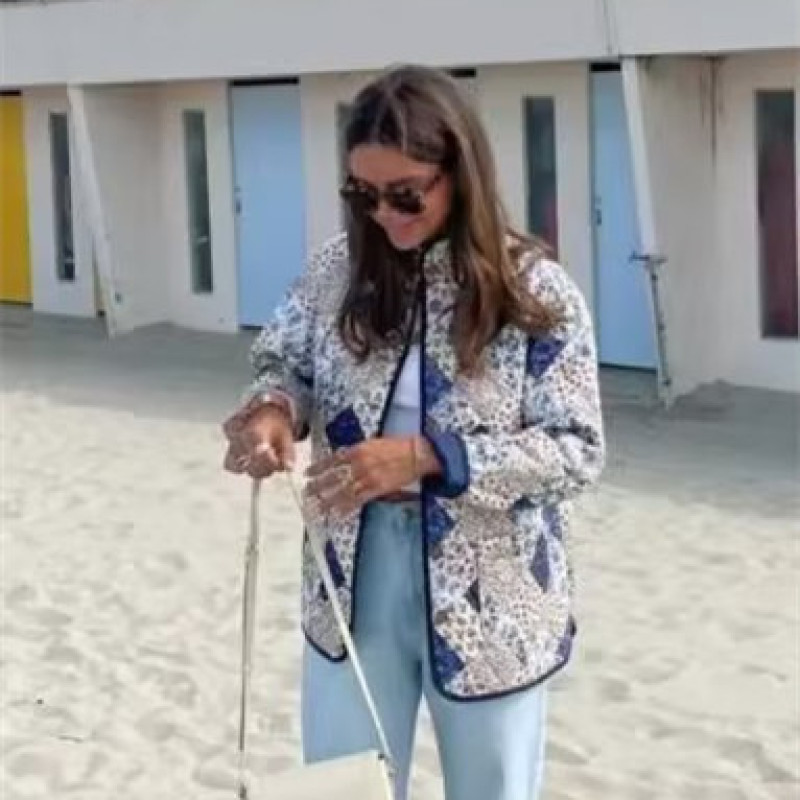 Vintage Stand Collar Printing Quilting Cotton Women's Clothes