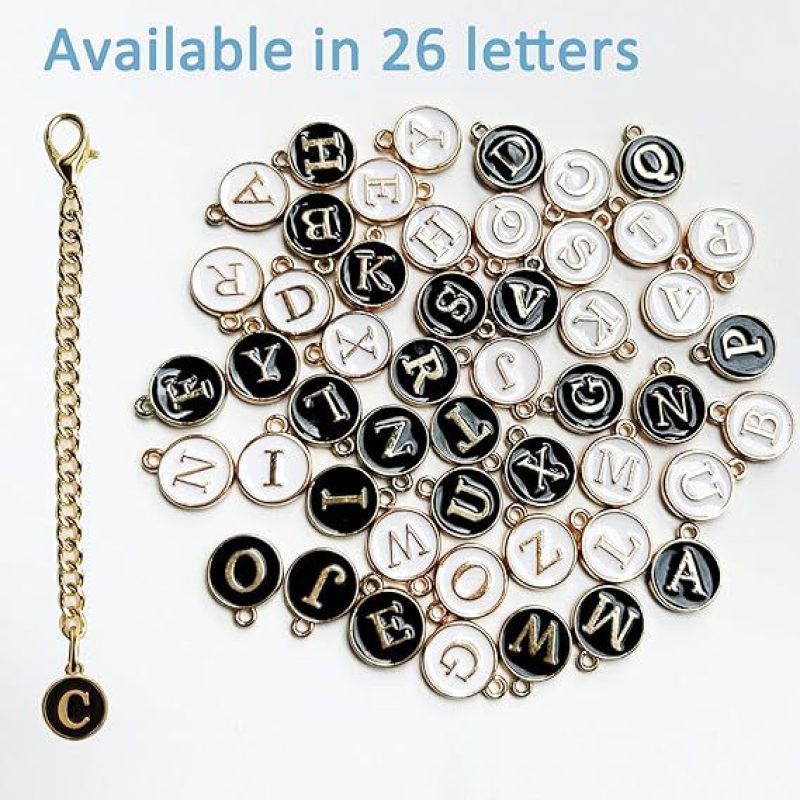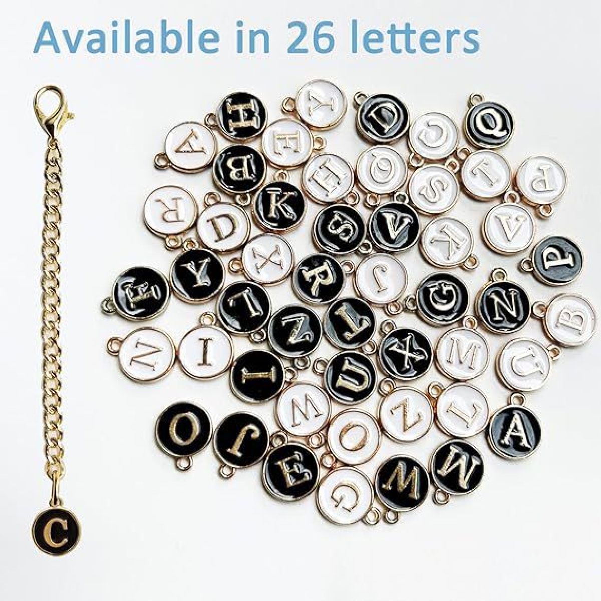 Color: round (black and white) two-piece Letter Pendant, single white alloy oil dripping letter pendant, single black alloy oil dripping letter pendant