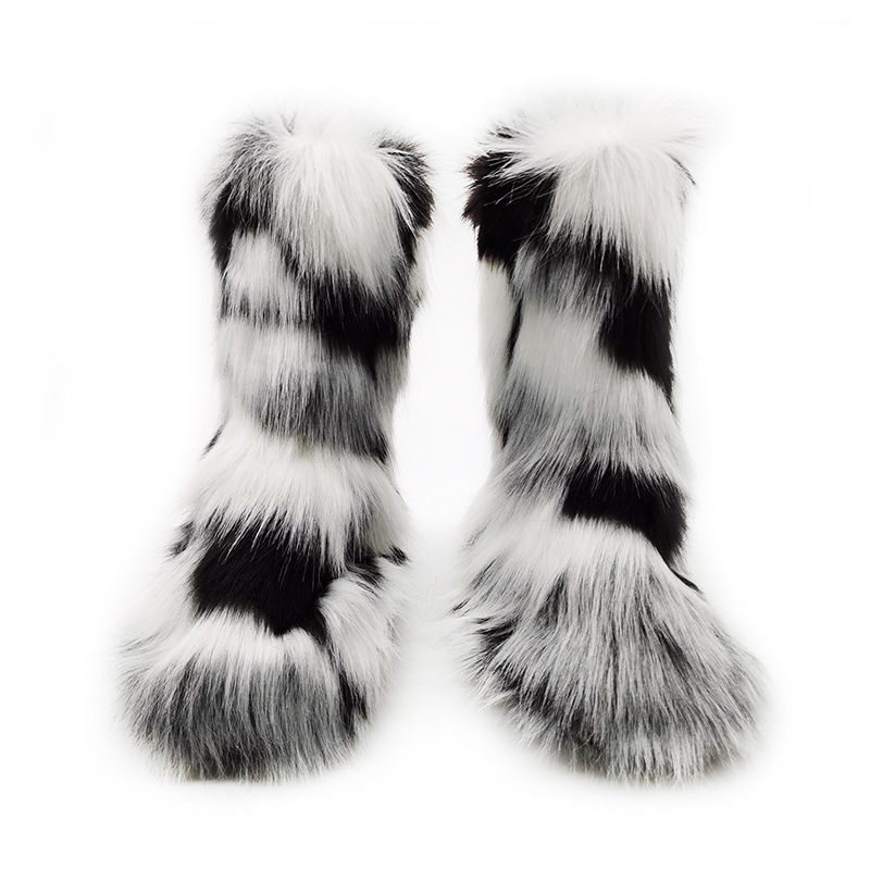 Women's Plush Snow Boots Plus Size Color Flat Women's Mid Boots
