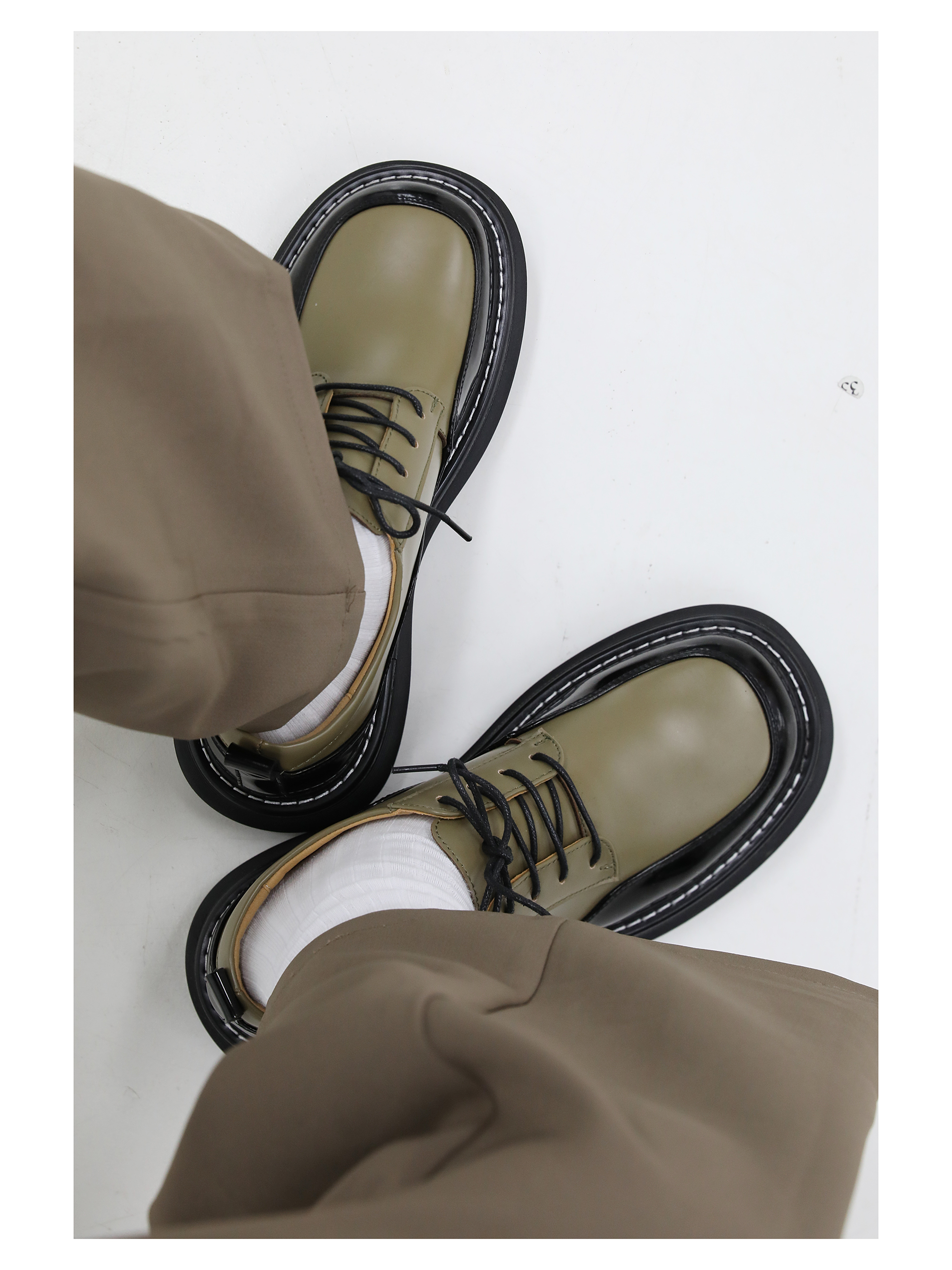 Matching Color Casual Leather Shoes Fashion Men Thick Soled Big Head