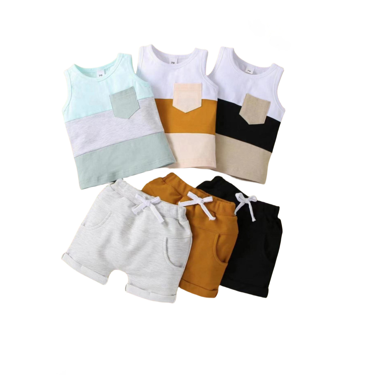 Color: dark green short sleeve, gray short sleeve, light yellow short sleeve, gray vest, khaki vest, black vest