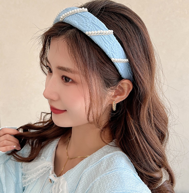 Color: blue pearl headband, white pearl headband, mesh flower headband, rose small flower headband, creamy-white, light blue, 3# Small fresh six-piece set, 4# Small fresh six-piece set, 8# Small clear three-piece set, 10# Small clear three-piece set, black hair hoop, light blue, blue lace, mesh blue, summer-little blue flowers