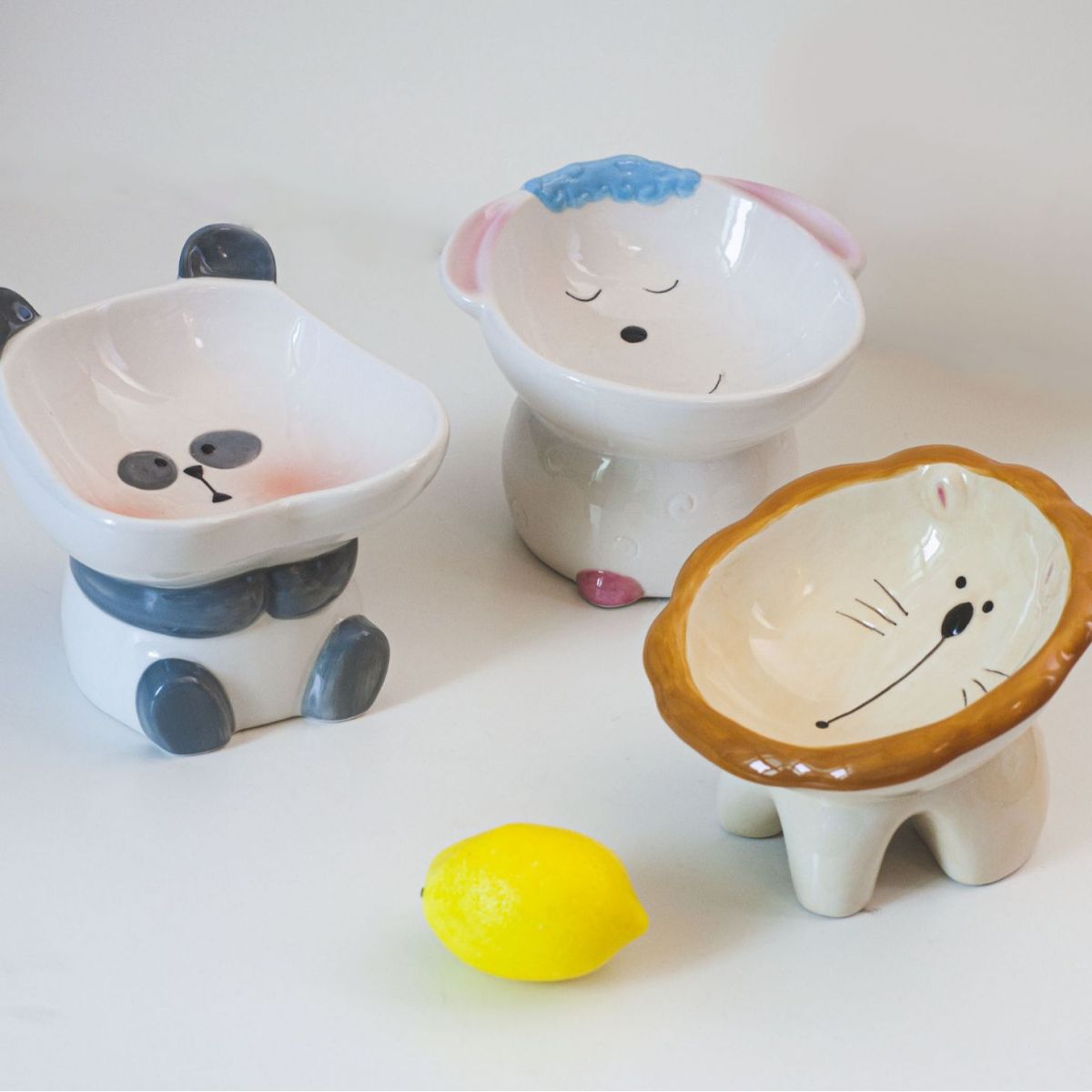 Specifications: Brown lion tall bowl, cute sheep tall bowl, cute panda tall bowl, blue cheese donut food bowl, yellow cheese donut, large blue donut with bowknot
