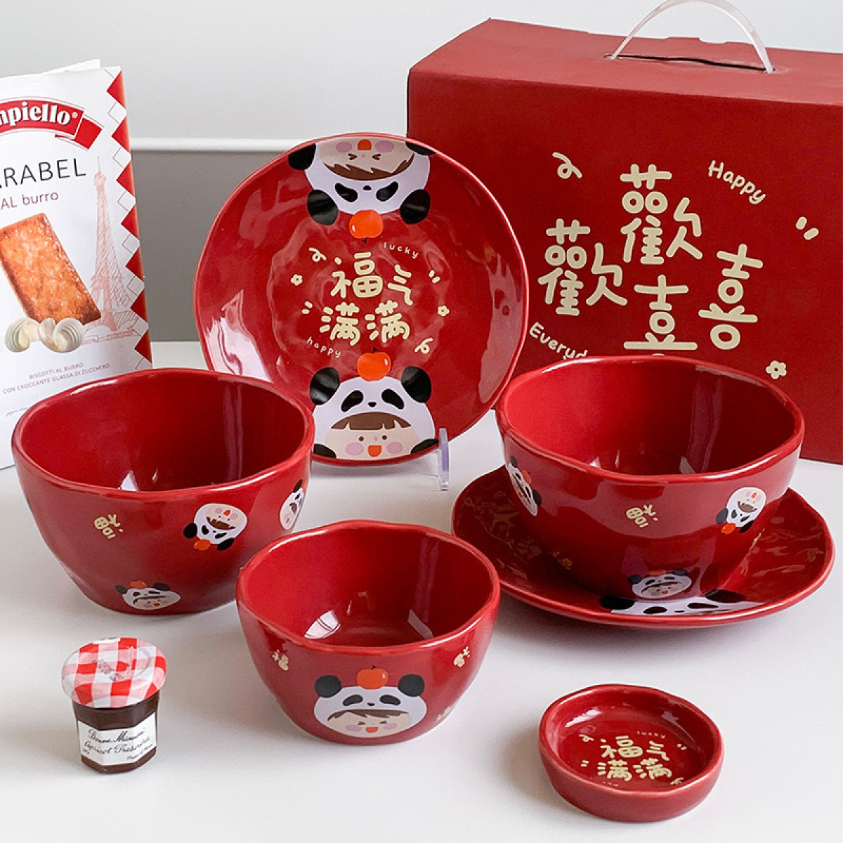 Color: Blessing panda [4.5-inch Bowl], blessing panda [6-inch Bowl], blessing panda [7.8-inch plate], blessing panda [Plate]], lucky panda [for one person 5-piece set] gift box, lucky panda [for two 9-piece set] gift box, lucky panda [four-person food 18-piece set] gift box
