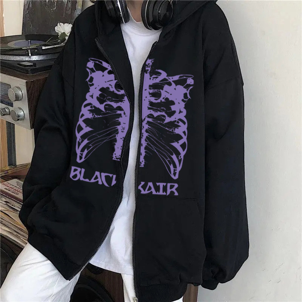 Color: black zipper, black 1# zipper, black hoodie, printed, white short zipper