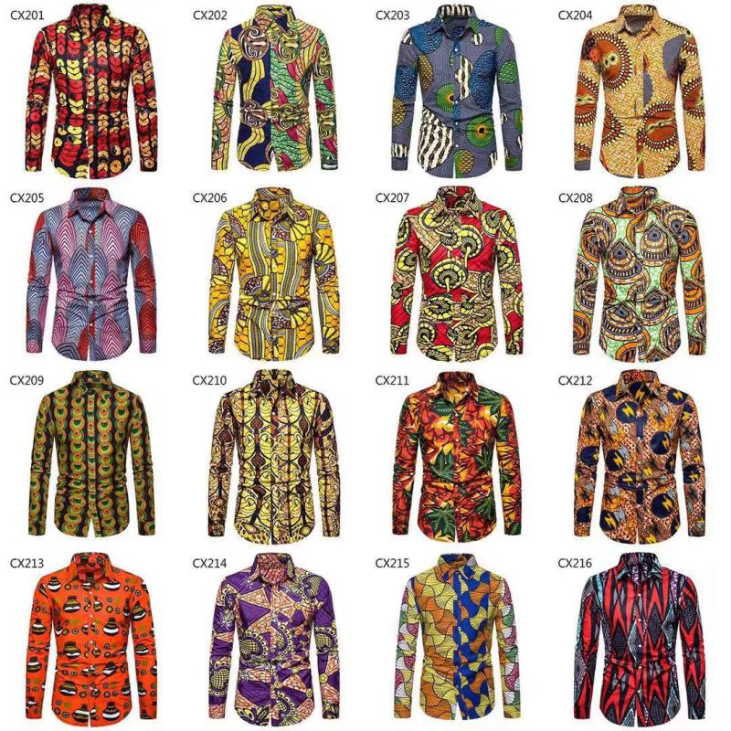 Men's Long-sleeved Shirt Ethnic Print Slim Fit
