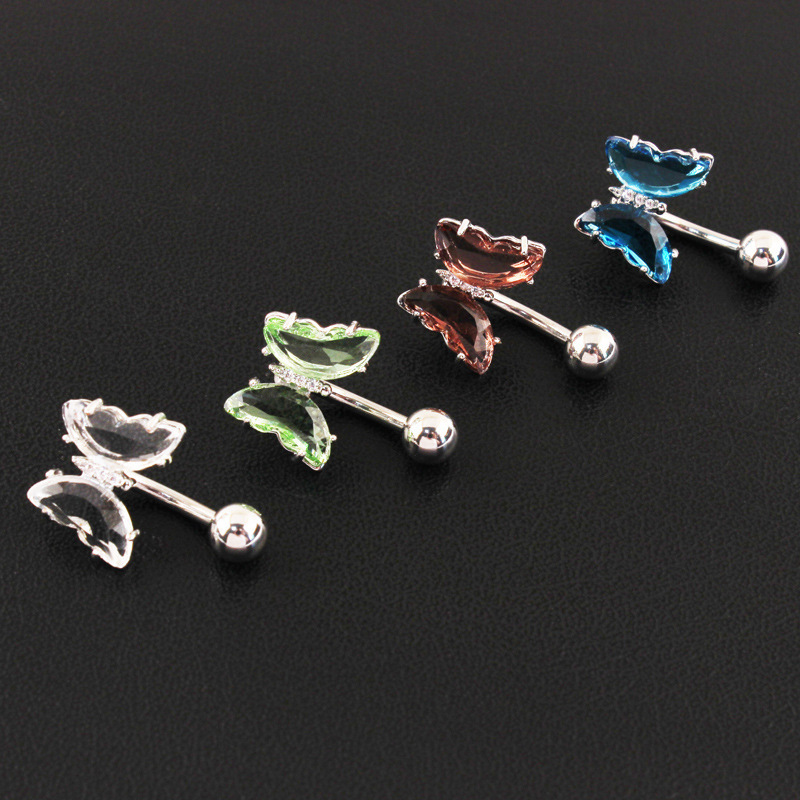 Short Titanium Steel Zircon Small Butterfly Anti-allergy Navel Stud