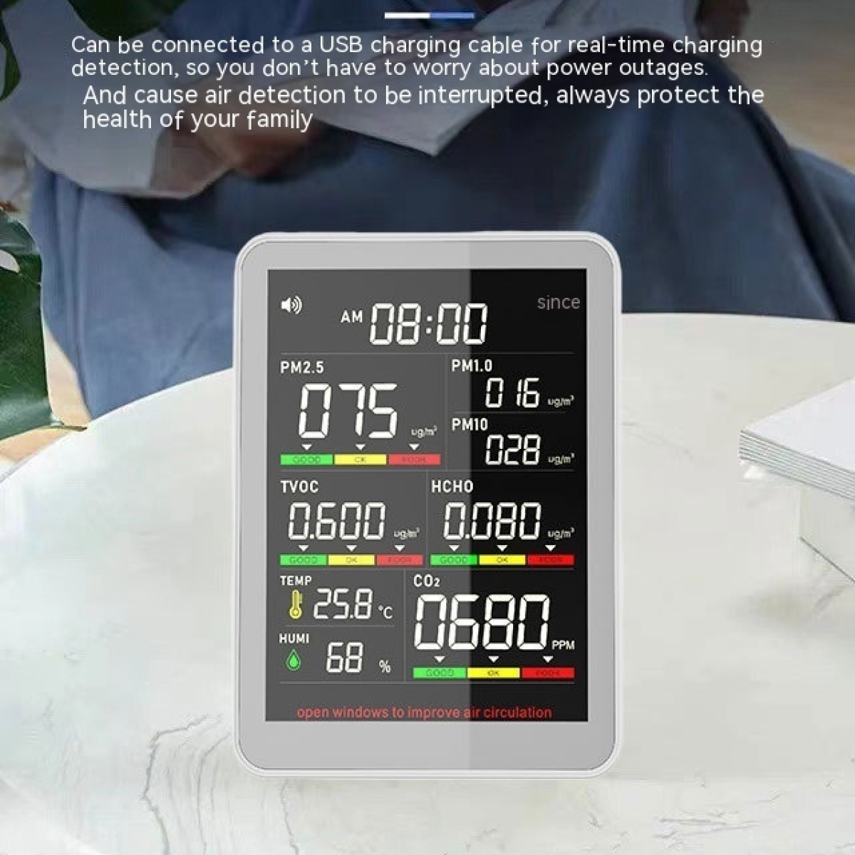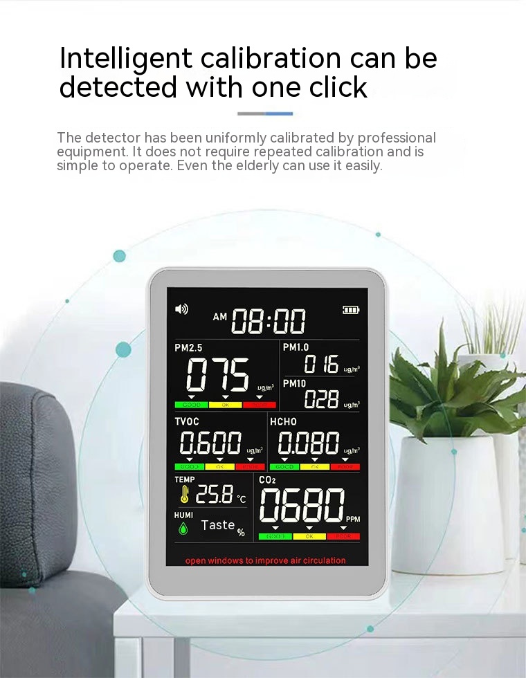 Measurement object: Carbon Dioxide/formaldehyde/PM2.5/TVOC/temperature and humidity, etc.