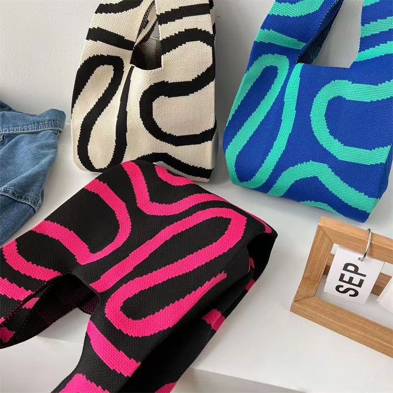 Color: knitted bag lines Black M, knitted bag lines Black Black Rose Red, knitted bag lines blue and green