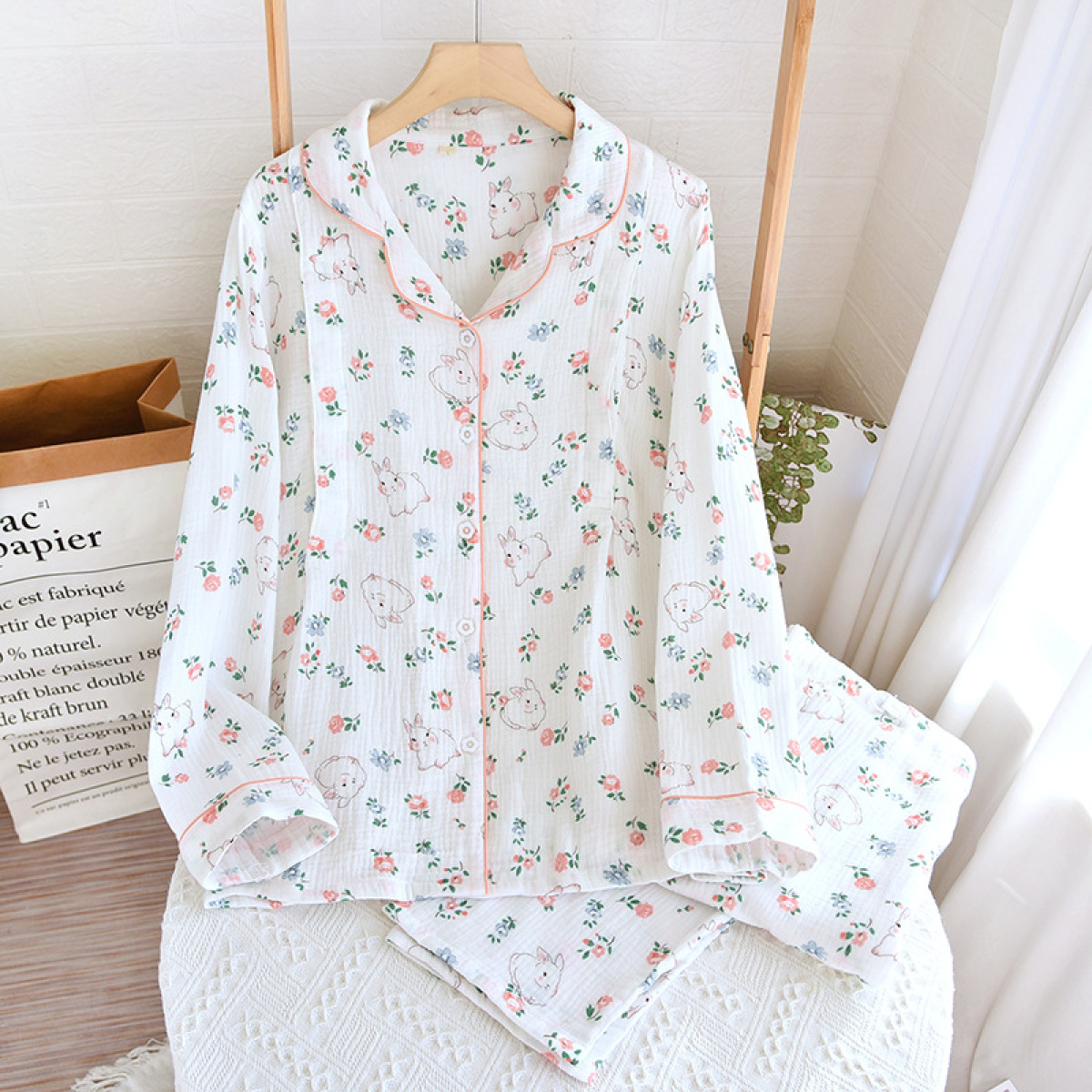 Color: crepe White small flower moon rabbit