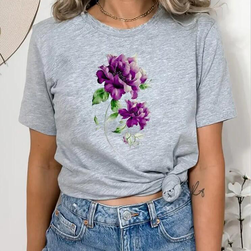 European And American Digital Printing Casual Round Neck T-shirt