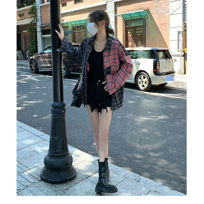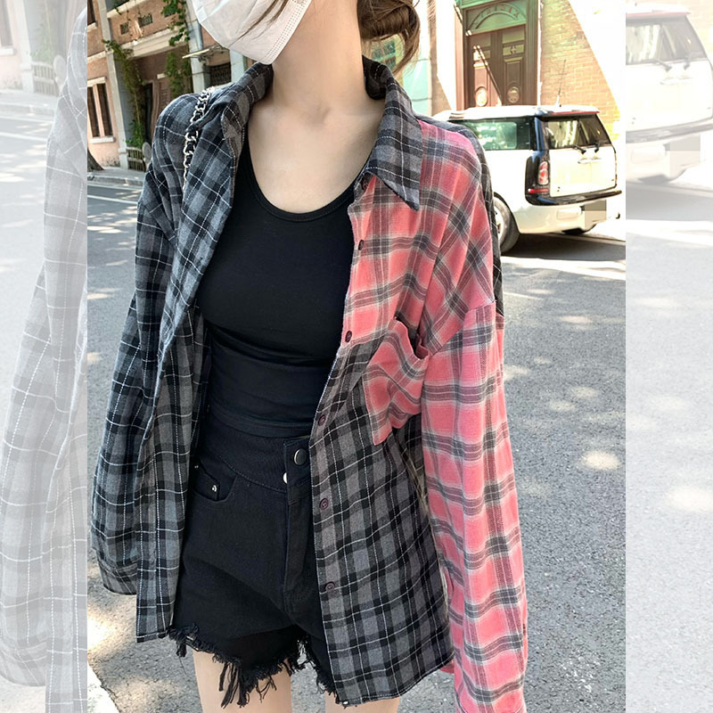 Color: pink Gray lattice shirt