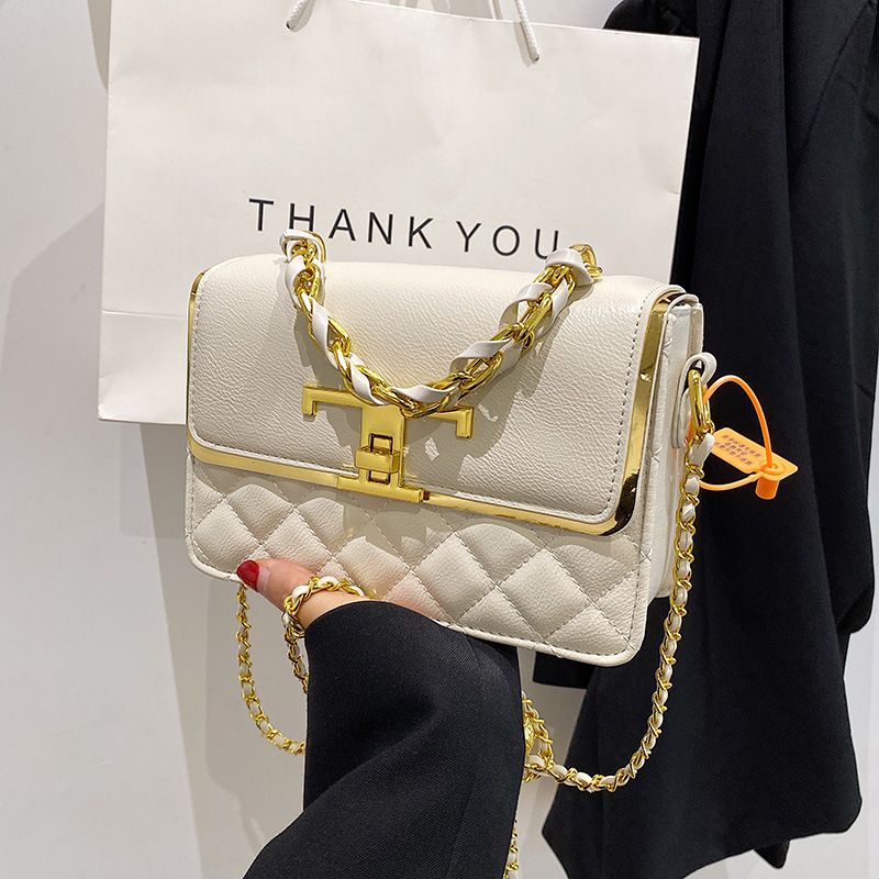 Popular elements: contrast color, diamond mesh, chain, stitching, lock