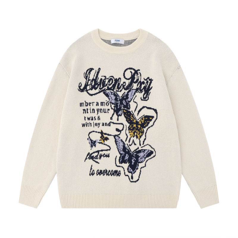 Butterfly Graffiti Round Neck Sweater Men's European And American