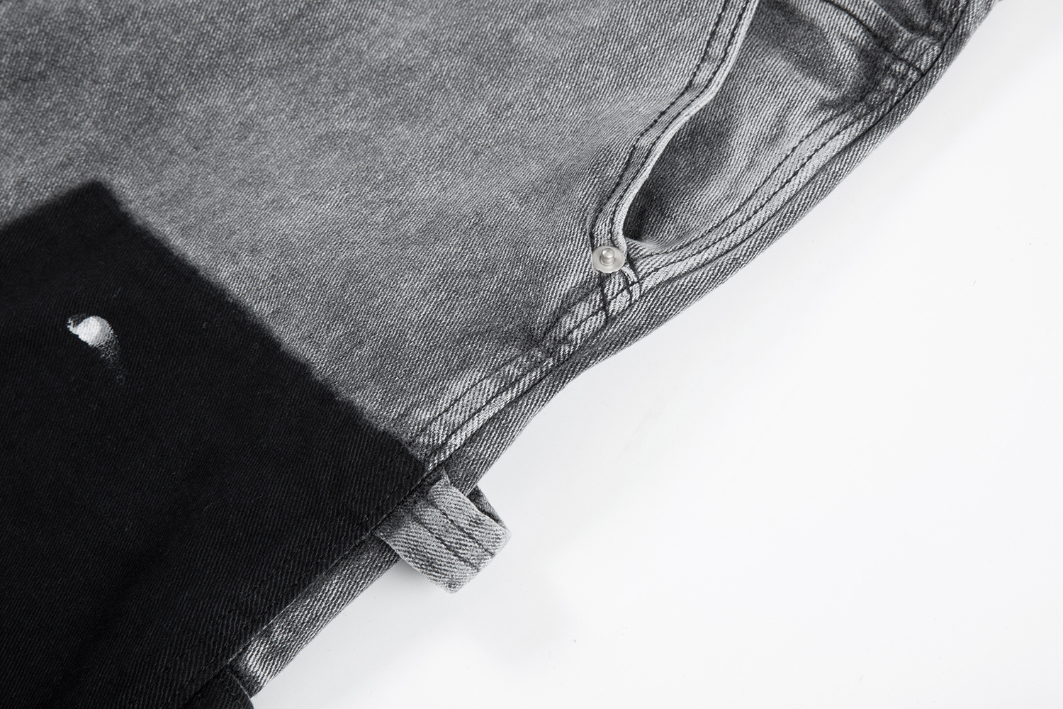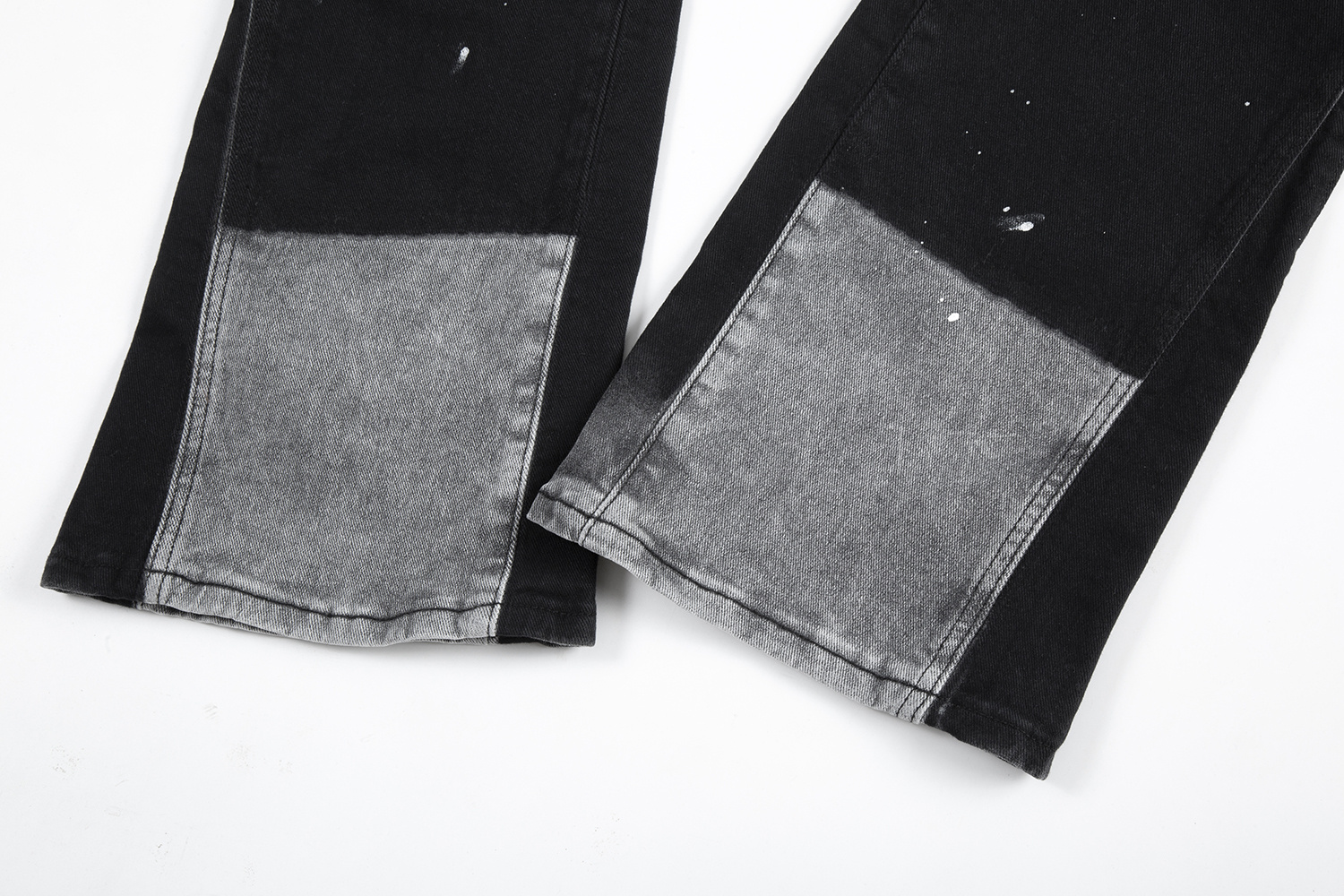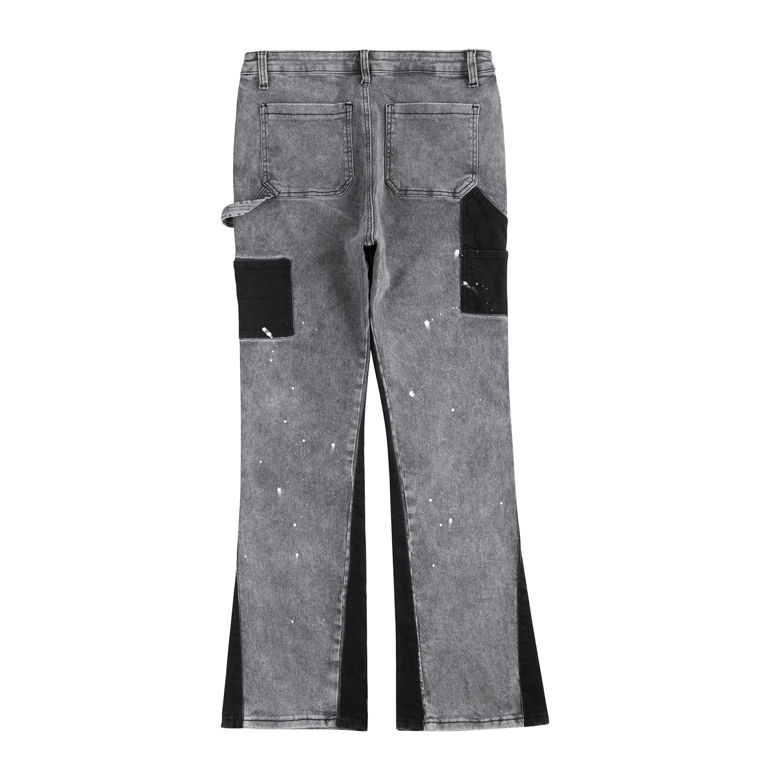 Men's Washed And Worn Splash Ink Color Contrast Patchwork Denim Flared Pants