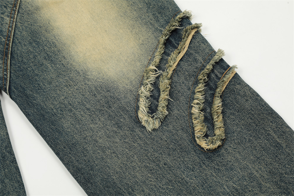 Men's High Street Design Pocket Cat Beard Stitching Loose Wide Leg Mop Pants