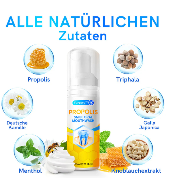 Ingredients: Water, propolis extract, garlic extract, chamomile extract, mint extract