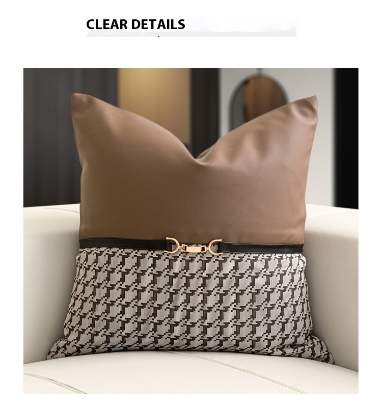 Color: 30x50cm Brown km waist pad sets, 50x50cm Brown km square pillowcase, 45x45cm Brown km stitching PU square pillowcase, 30x50cm orange winding belt, 45x45cm brown diagonal woven square pillow