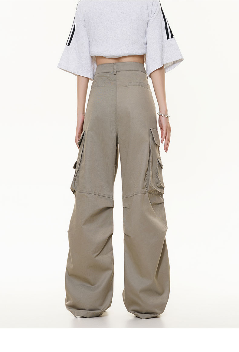 Wide Leg Paratrooper Pants Men's Multi-pocket Casual Trousers