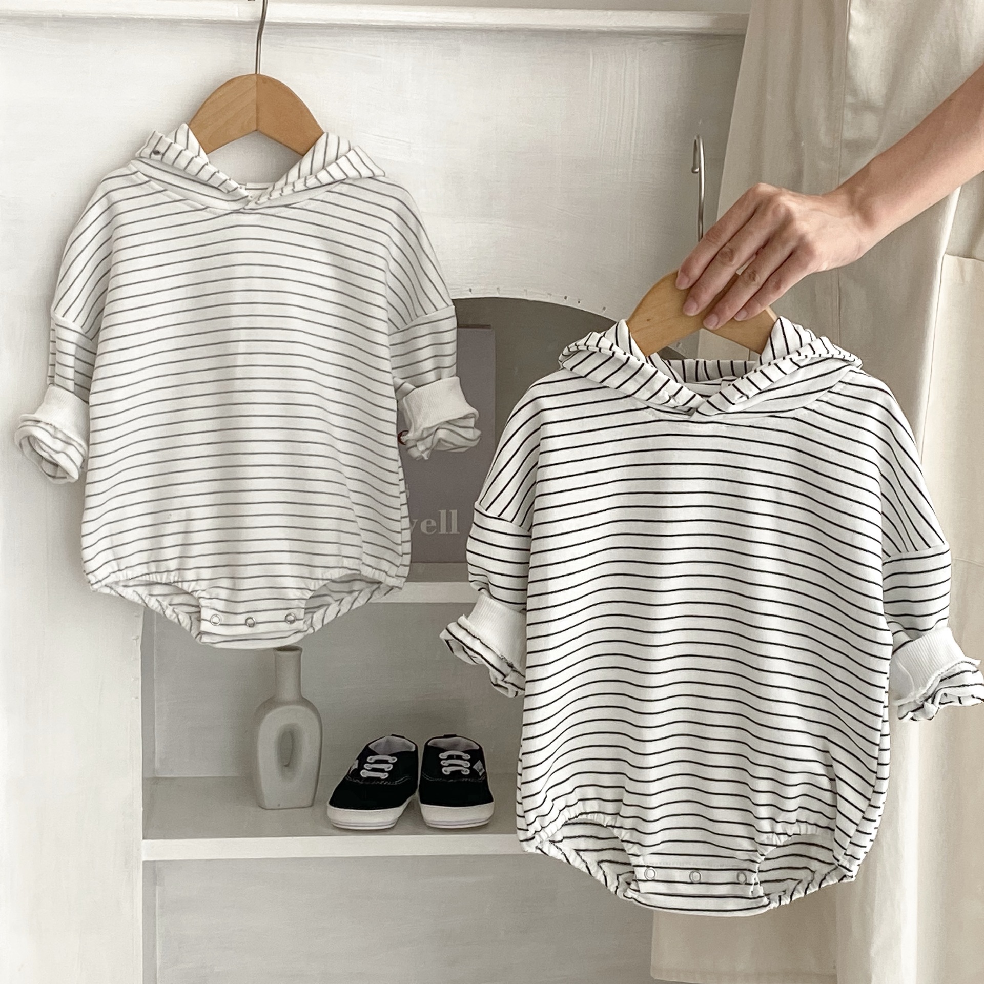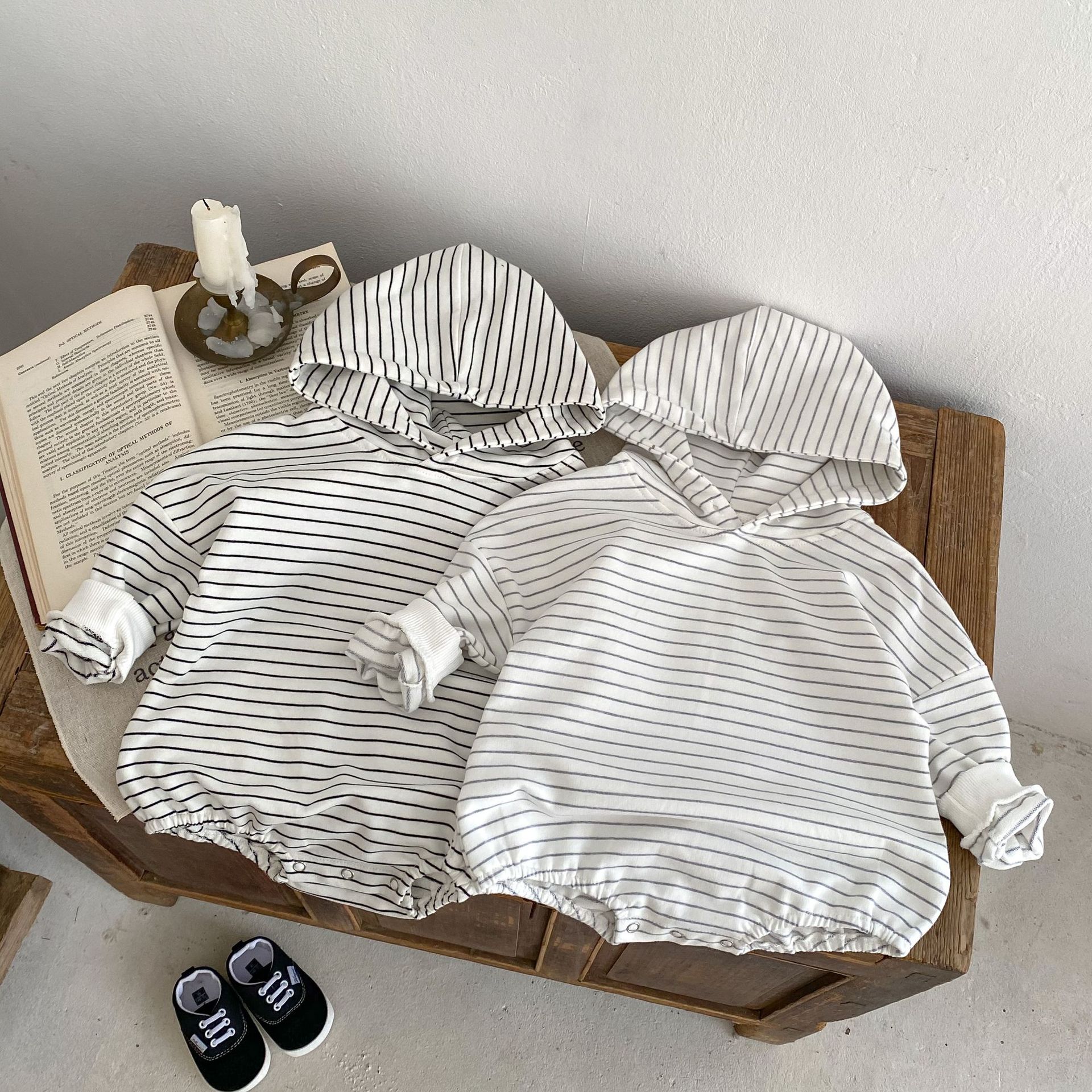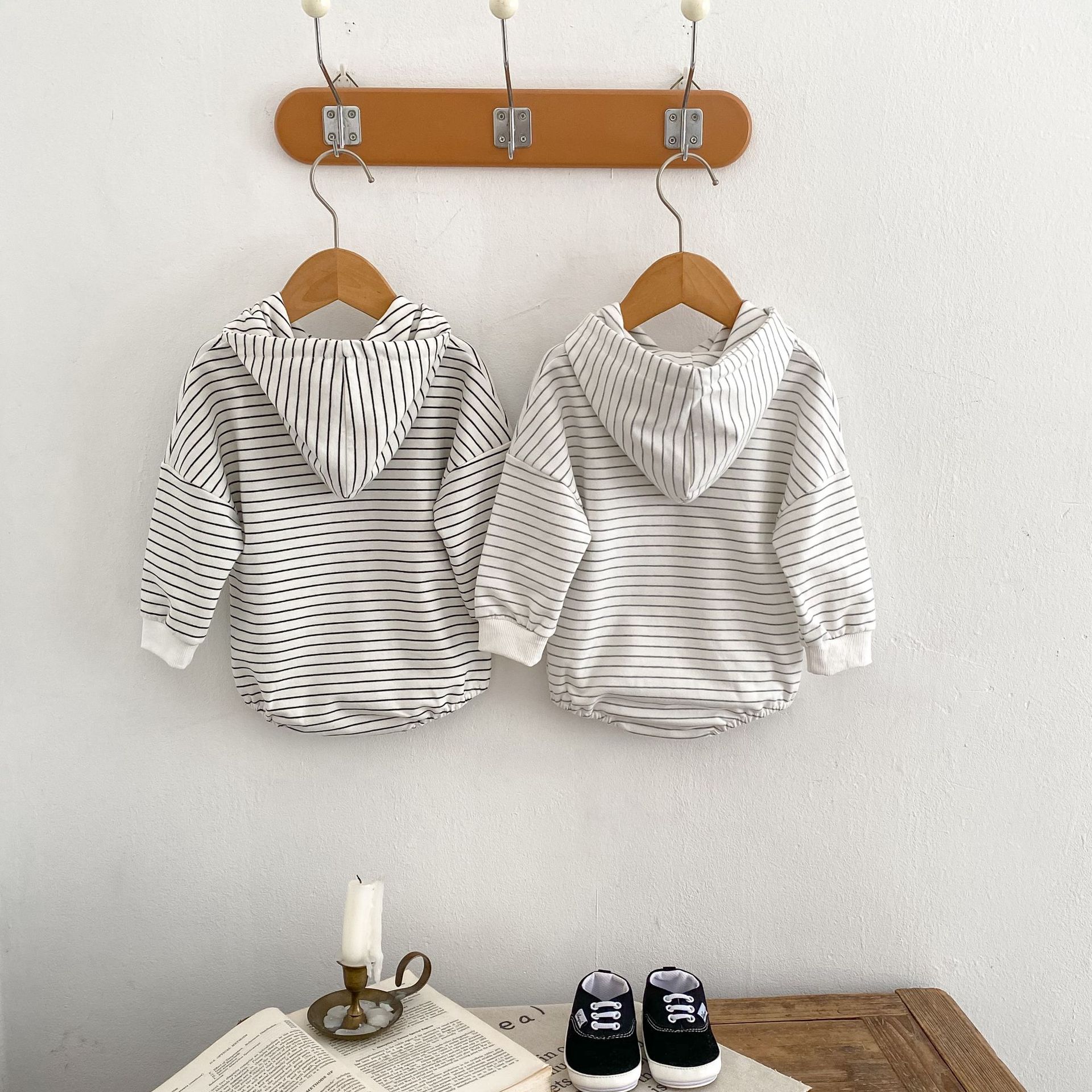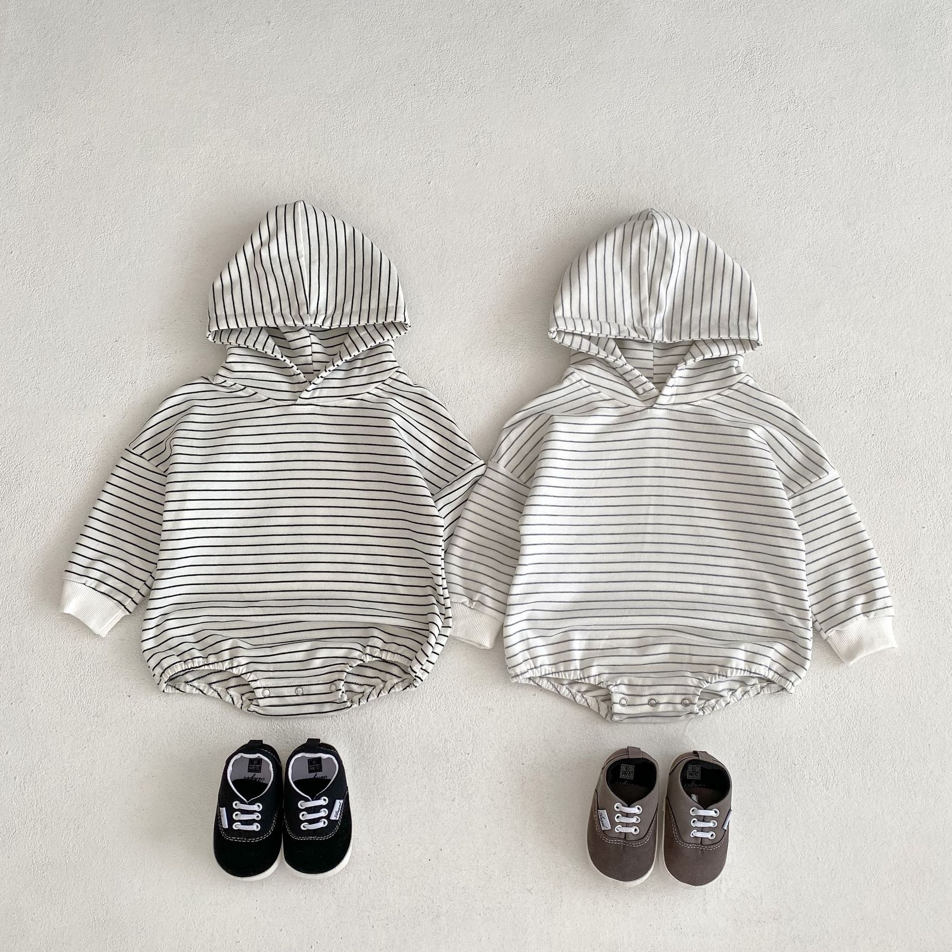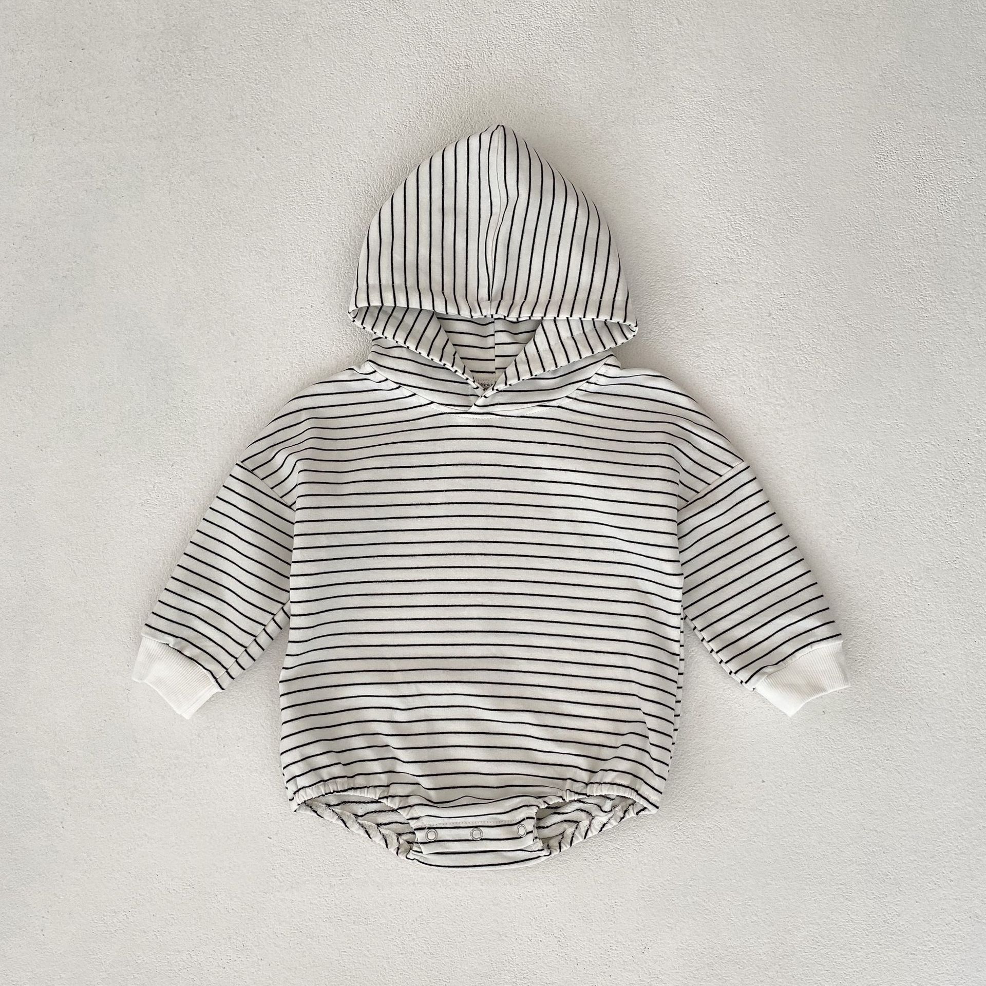 Infants Pinstripe Hooded Sweater Romper Jumpsuit