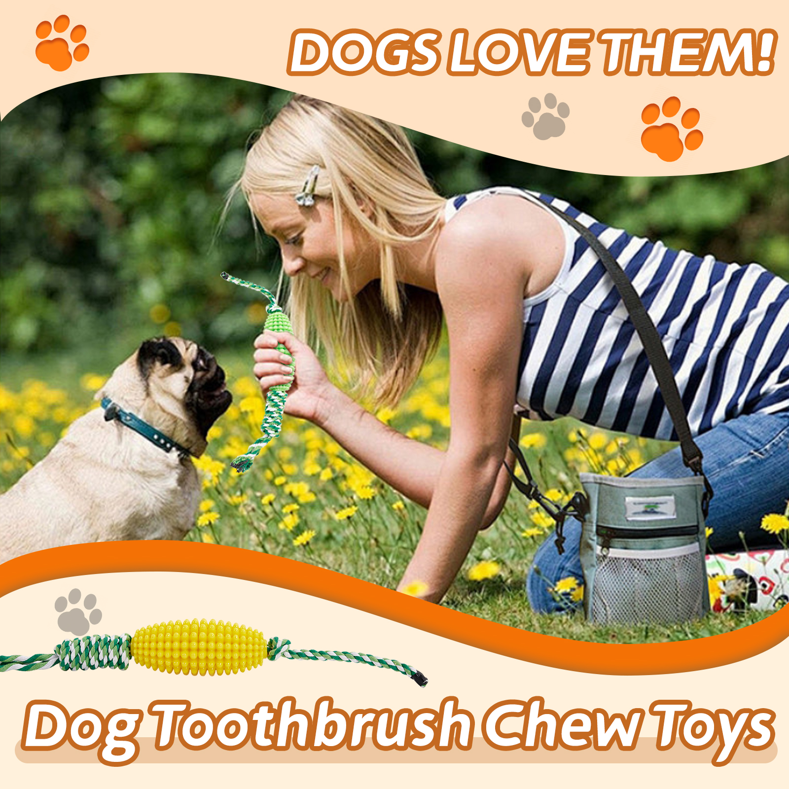 Good For: playing with this toy regularly will relive dog's anxiety and improve IQ when they are at home by themselves, preventing destroy from furniture and clothes, it is come true that dogs brush teeth by themselves.