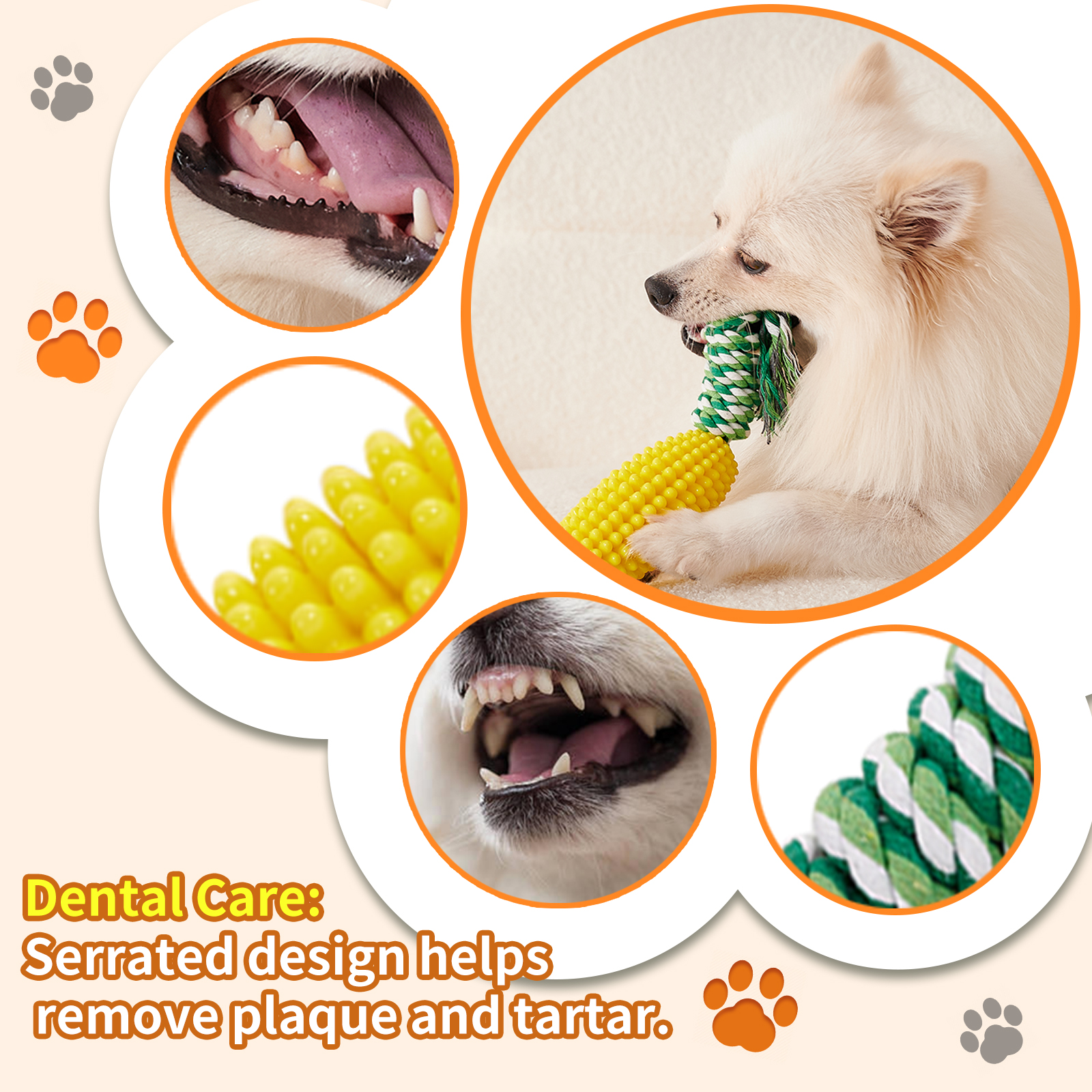 Effectively Clean Teeth: according to the features of dog's teeth, the novel designed molar protrusions are zigzag and arranged horizontally and vertically, which can thoroughly clean dog's incisors, fangs and molars when playing the toy, calculus effectively, fully protecting dog's dental health.