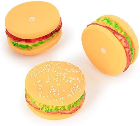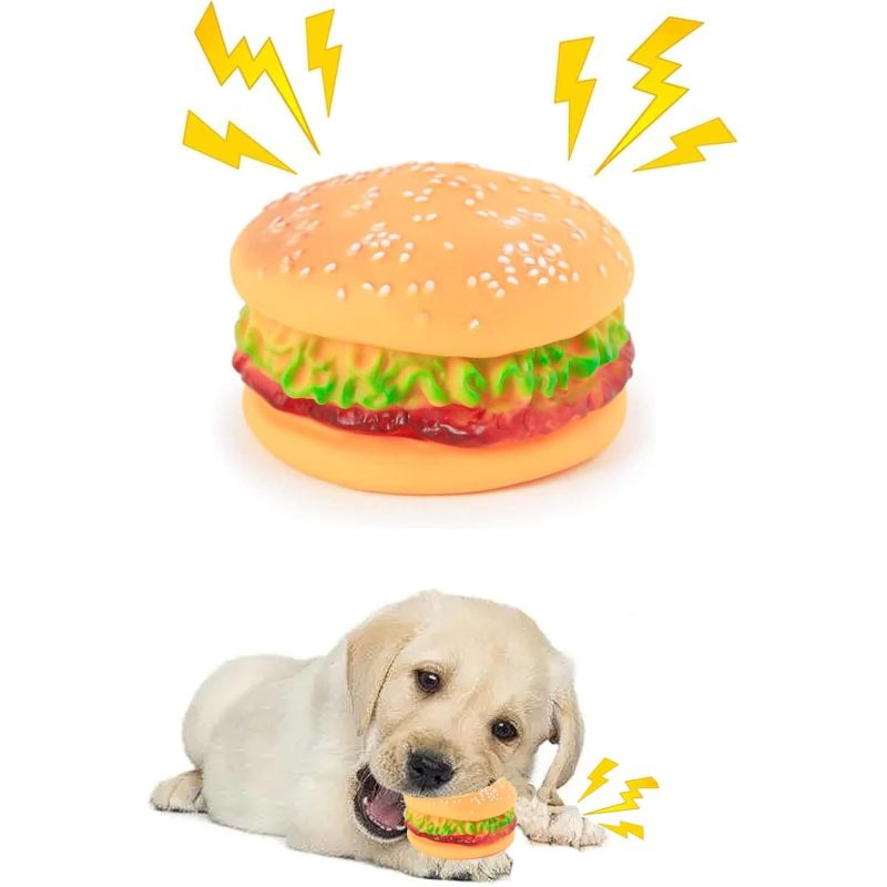 Super durable toy: This burger toy is sure to satisfy your dog's appetite for chewing and biting. Made of durable natural rubber, your dog will chew for a long time after eating desserts.