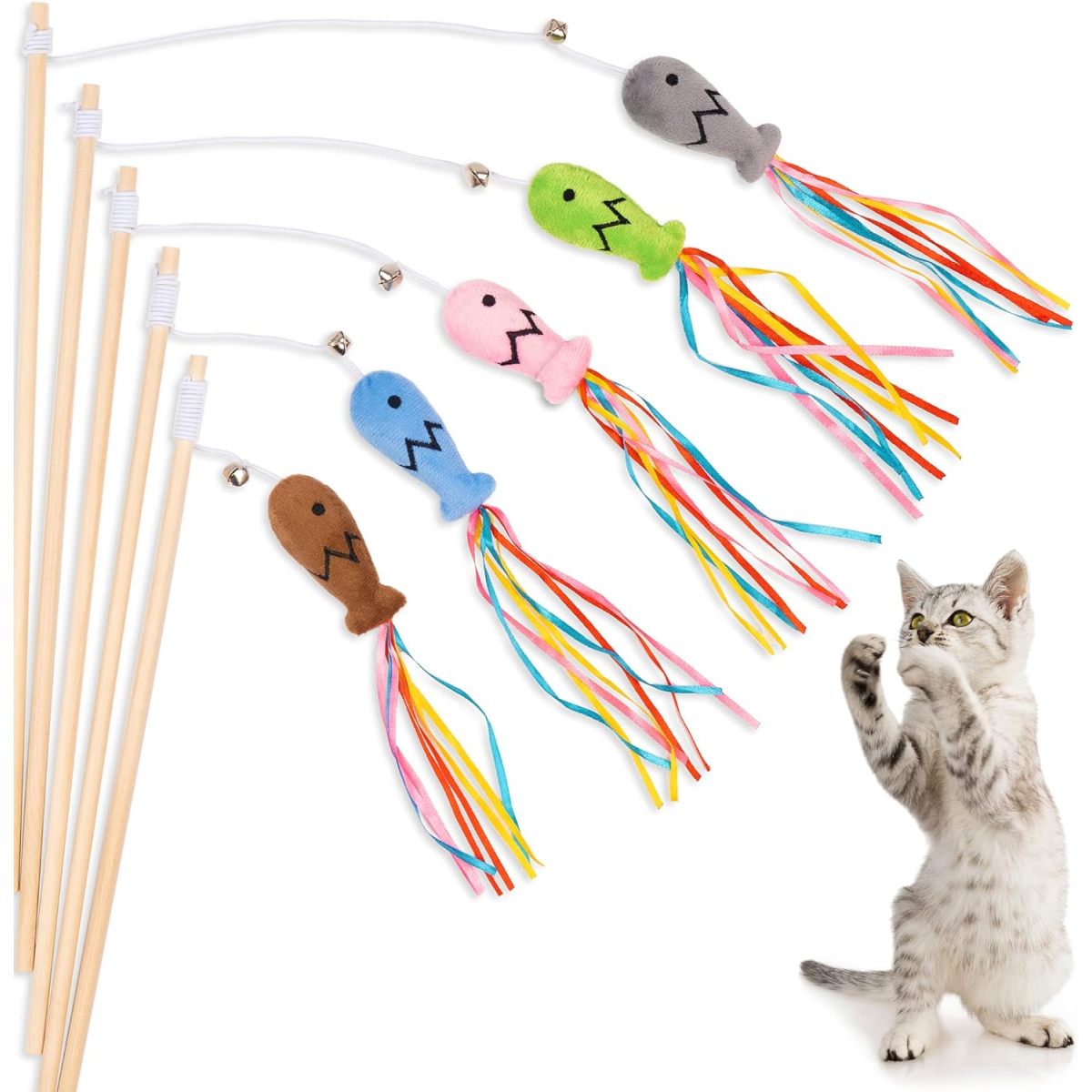 COLORFUL : These swaying ribbons can easily catch the cat’s eyeballs, and the cat will constantly kick and bite them; The sound of Bell could attract cat far from you to play with this toy.