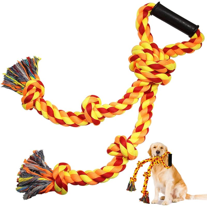 【Durable and Strong】All of the dog tug toys for aggressive chewers are made of high quality cotton material, wear-resistant and tightly woven twine with sturdy cross connector allow the big dog rope toys for large dogs to withstand aggressive chewing shaking and tugging by small and medium sized dog