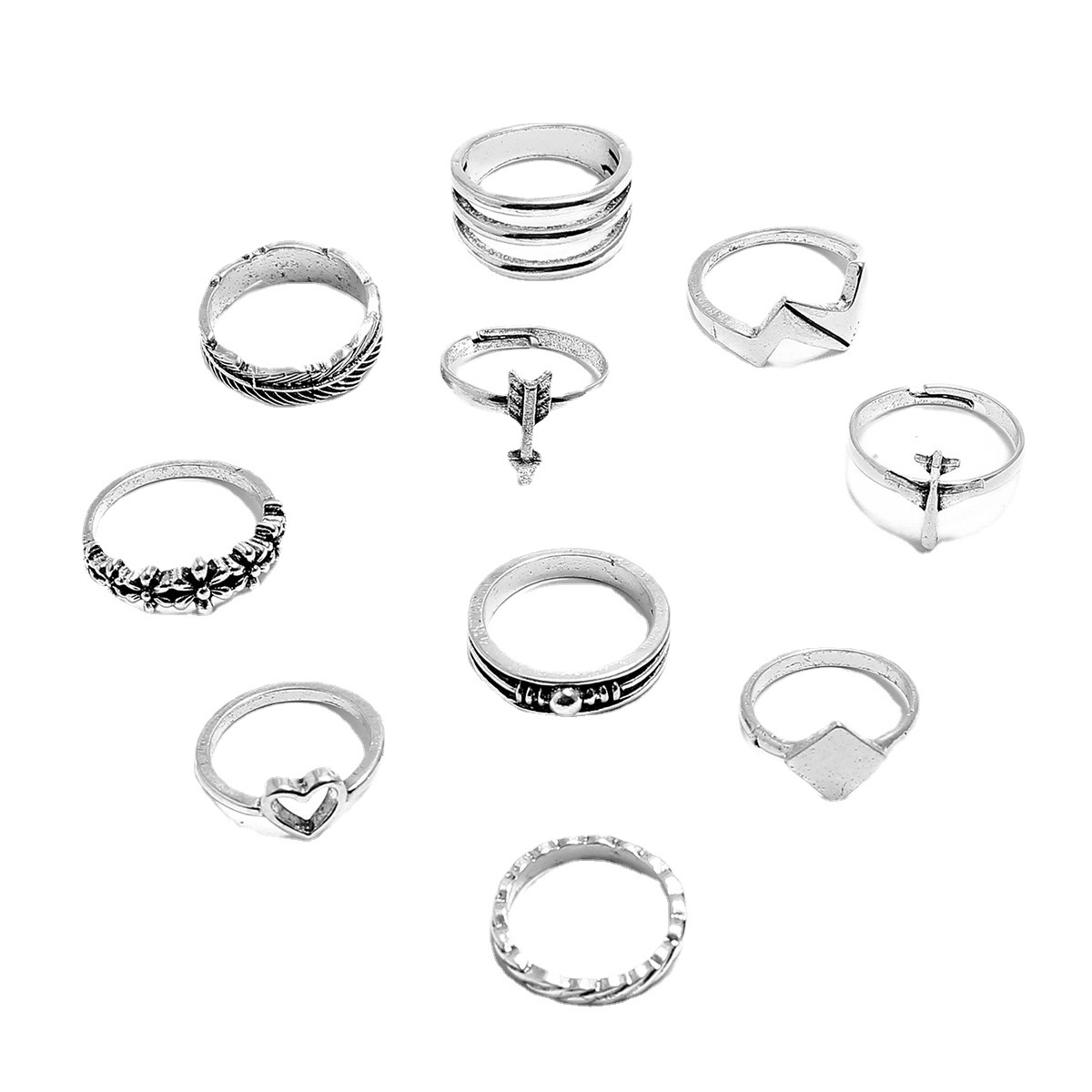 Hollow Silver Small Flower Airplane Wave Geometry Set Of 10 Rings