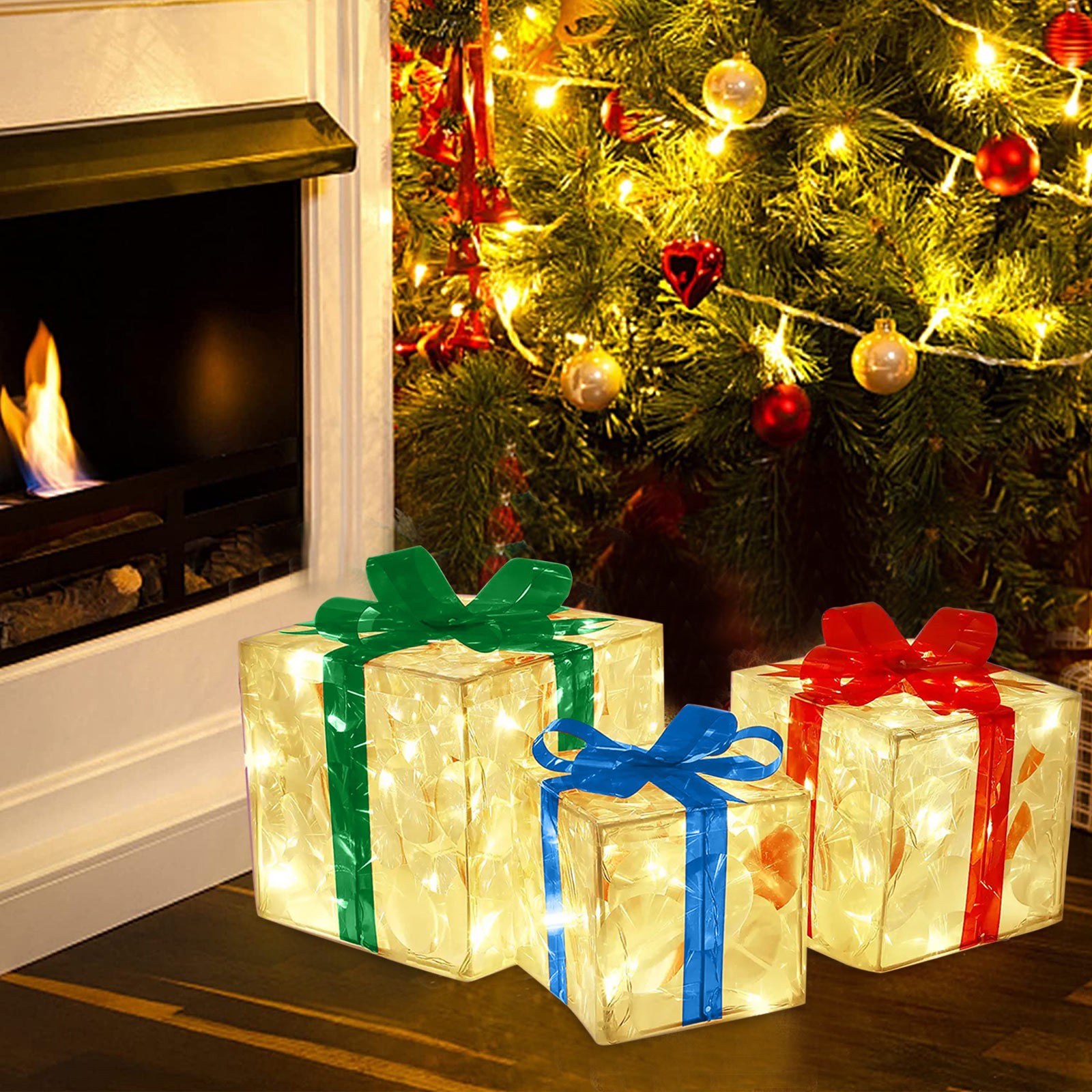 Christmas Lights Gift Box: The Christmas Lights Gift Box is made of sturdy PVC material, perfect for Christmas, weddings, banquets, anniversaries and home, office, restaurant, hotel, bar, etc. Decorate your home with these beautiful glowing Christmas boxes for the perfect Christmas decoration for your home or patio.