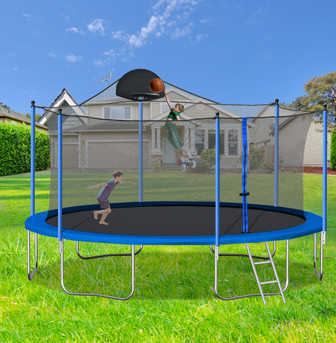 Product Name:14FT Trampoline for Adults & Kids with Basketball Hoop, Outdoor Trampolines w/Ladder and Safety Enclosure Net for Kids and Adults,Double-side Color cover