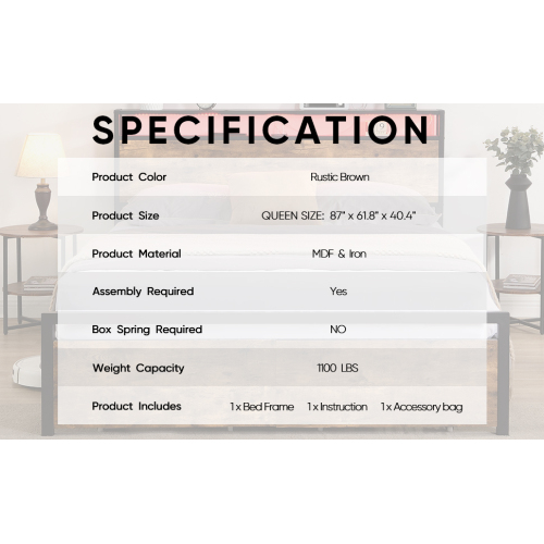 Product Name:Queen Size Bed Frame with Storage Headboard and 2 Drawers, LED Lights Bed with Charging Station, Metal Platform Bed No Noise, Mattress Foundation Strong Metal Slats Support No Box Spring Needed