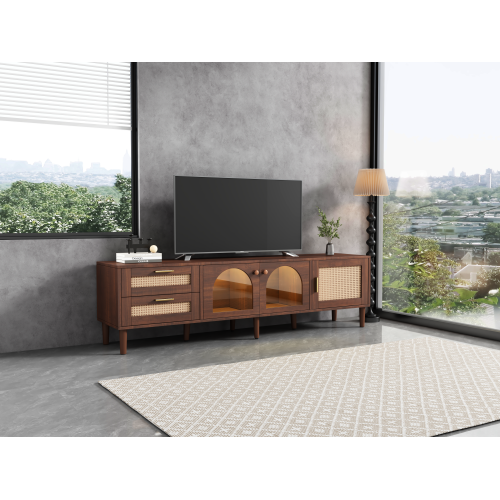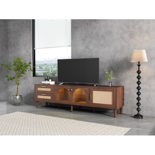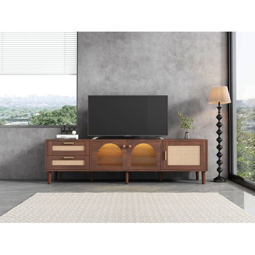 Product Name:Rattan TV Stand with 3 Cabinets & 2 Drawers, Rattan-inspired Media Console Table for TVs up to 80\', LED Light Entertainment Center, TV cabinet for Living room, Bedroom, Home Theatre