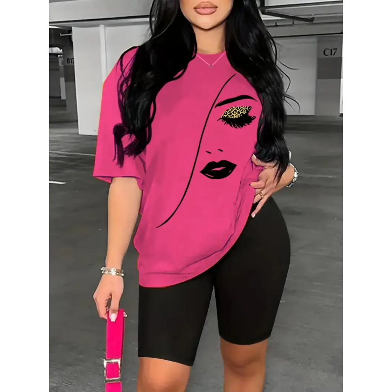 Printed Drop Shoulder T-Shirt Graphic Tees Women Tops