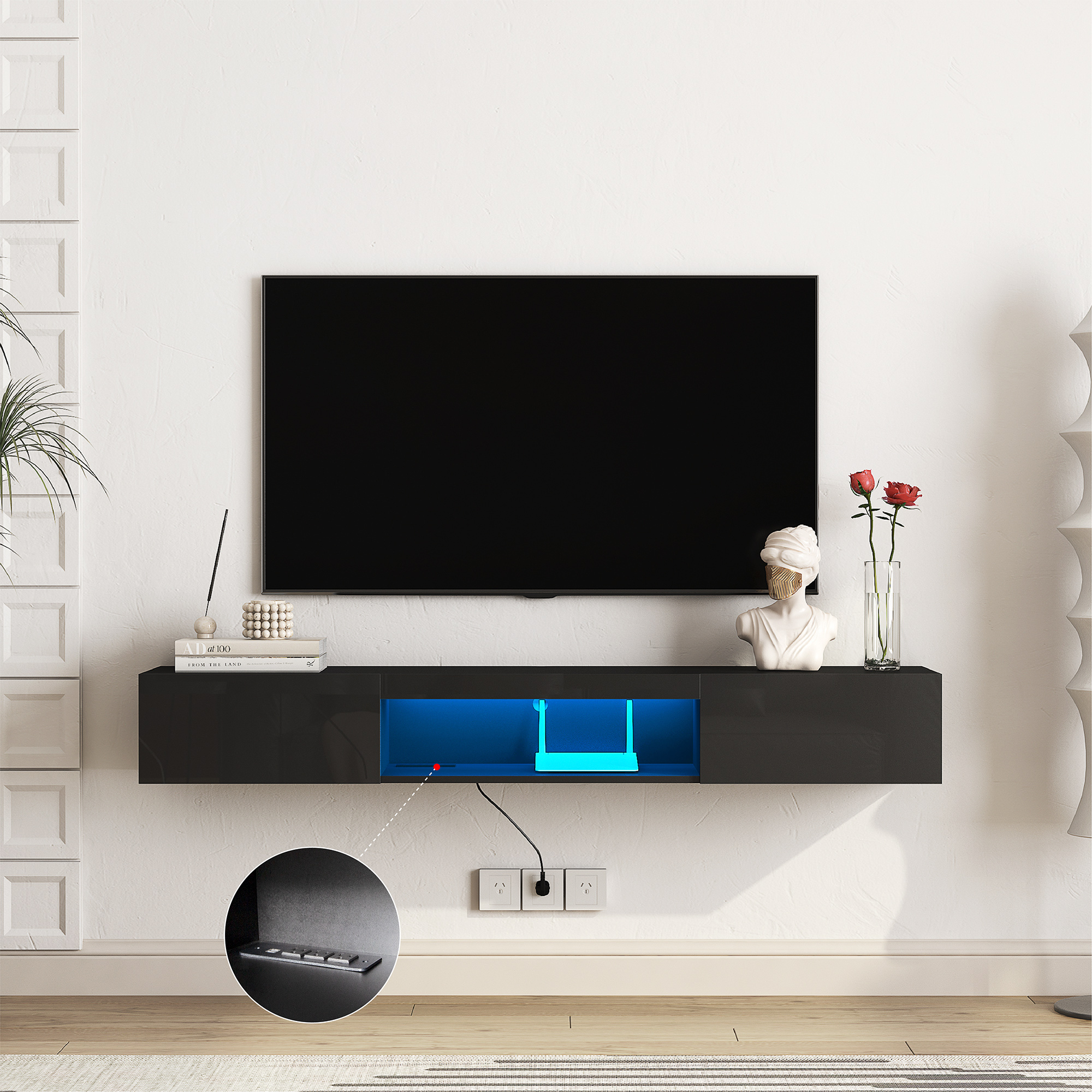 Product Name:Floating TV Stand Wall Mounted with 16 Color LEDs,63" Modern TV Stand, Floating TV Cabinet Entertainment Center for 55 60 65 Inch TV,Black