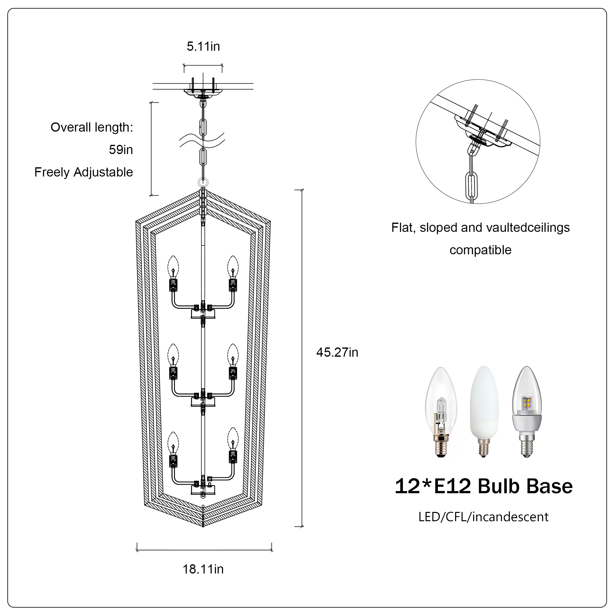 Number of Light Sources:12(Bulbs Not Included)