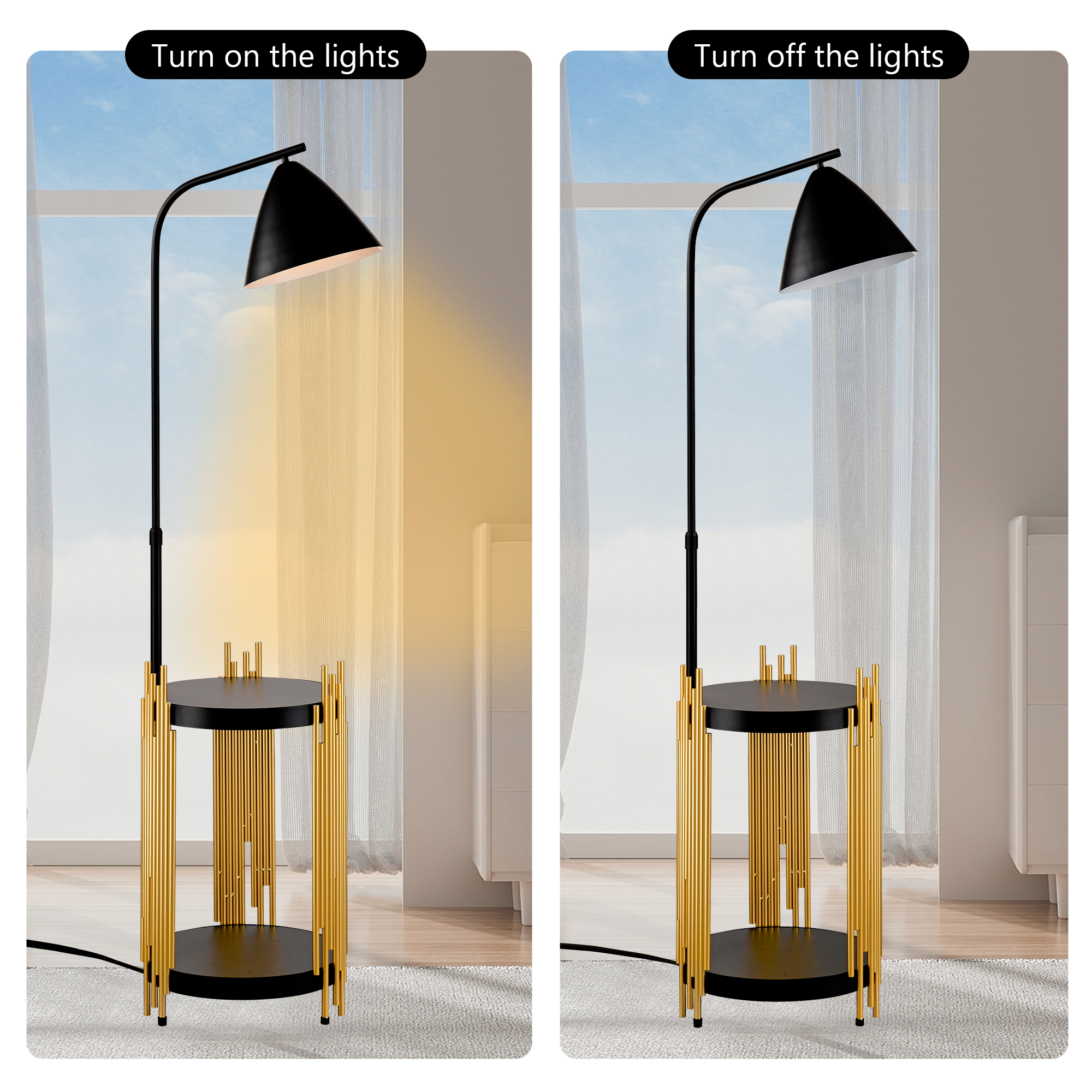 Product Name:Luxury Shelves Floor Lamp for Living Room with Metal Lampshade, Standing Lamp Tall Industrial Floor Lamp Reading for Bedroom, Office (E26 No Included Bulb) -Matte Gold+Matte Black