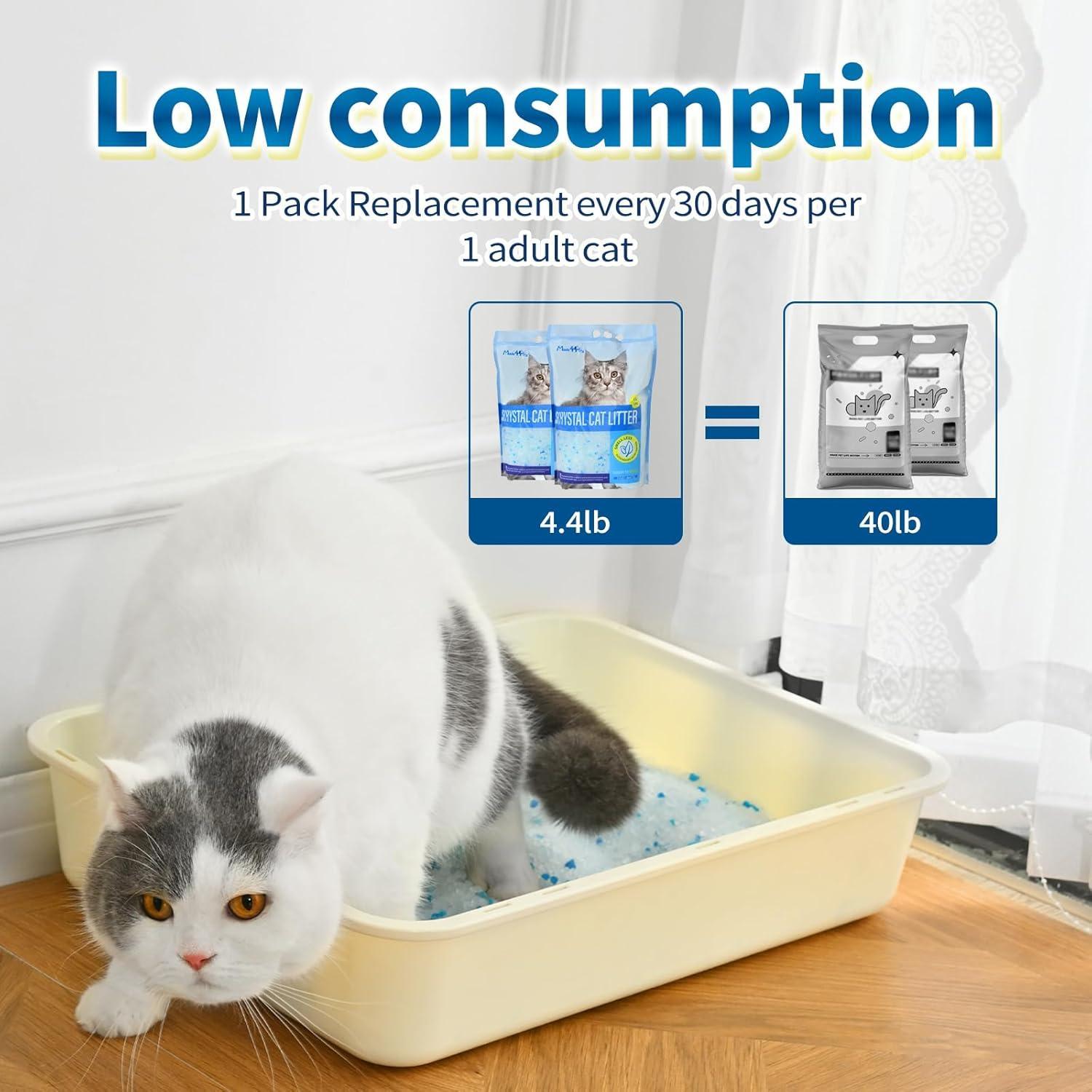 Extended performance: With long-lasting effectiveness, a single bag of our lightweight crystal cat litter can last up to a month per cat, minimizing the need for constant refilling.