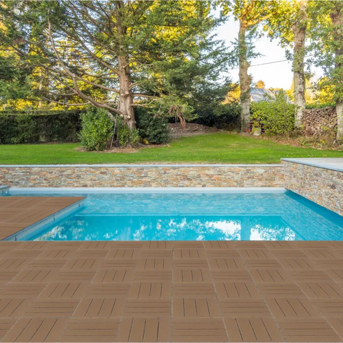 Revitalize your outdoor area with our Plastic Interlocking Deck Tiles. These versatile tiles are designed to elevate the functionality and aesthetics of your patio, porch, balcony, or poolside area. Crafted from high hardness plastic, these interlocking tiles are built to endure various weather conditions, ensuring long-lasting performance without any signs of fading or splintering. Classic stripe design adds a touch of elegance to your outdoor environment. Installation is a breeze with the innovative interlocking design, allowing you to quickly enjoy your new flooring. With non-slip pads for enhanced safety and a superior water drainage system to keep your space clean and dry, these deck tiles are the perfect choice for a hassle-free outdoor upgrade.