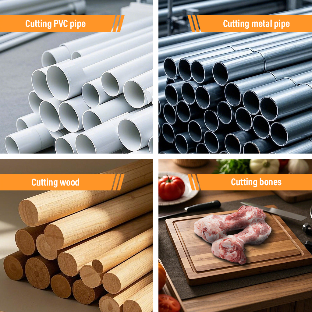Plastic/PVC cutting: Medium toothed saw blades can cut pipes, boards, and model materials.