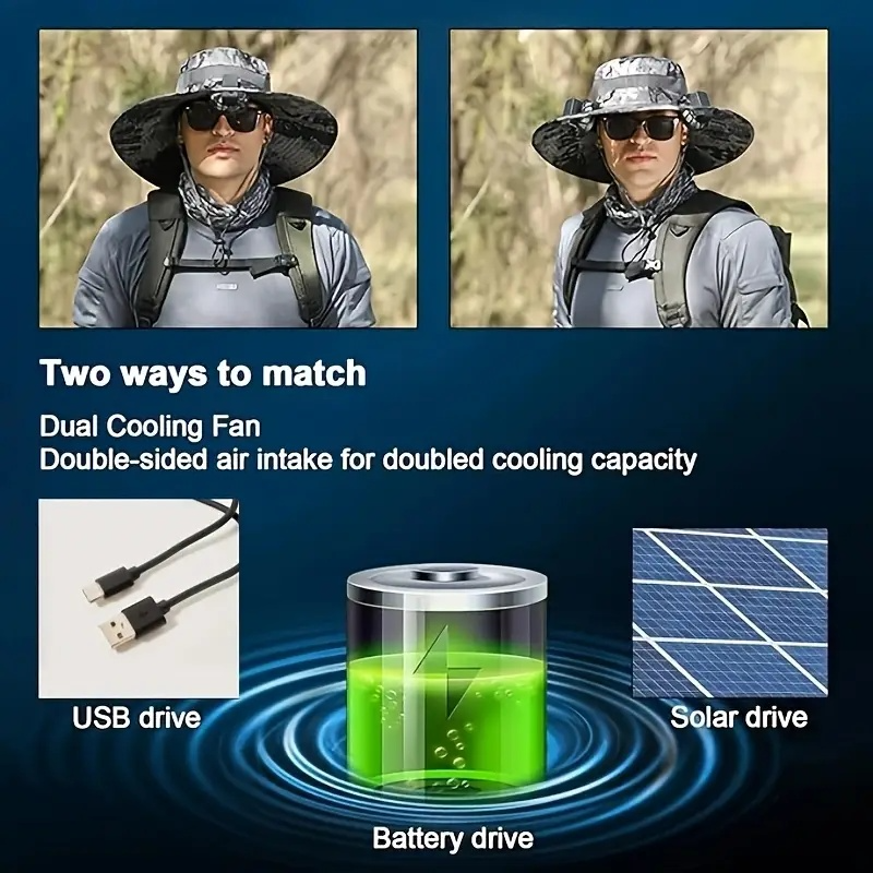 Solar Cooling Hat With Built-in USB Fan - For Outdoor Camping, Beach, And Construction - Lightweight And Breathable Sun Protection Hat For Men And Women - High-quality Outdoor Solar Fan Hat, Essential