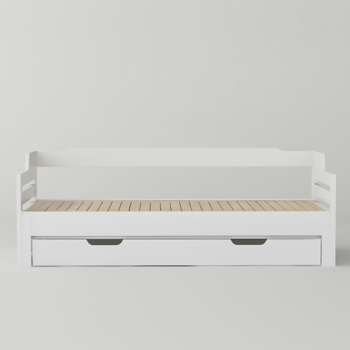 Product Name:Daybed, Trundle and Drawer, Cabin Bed, SIngle Guest Bed Sofa Bed, Pull out Trundle and Storage Drawer for Living Room and Bedroom - (3') 90 x190 cm - White