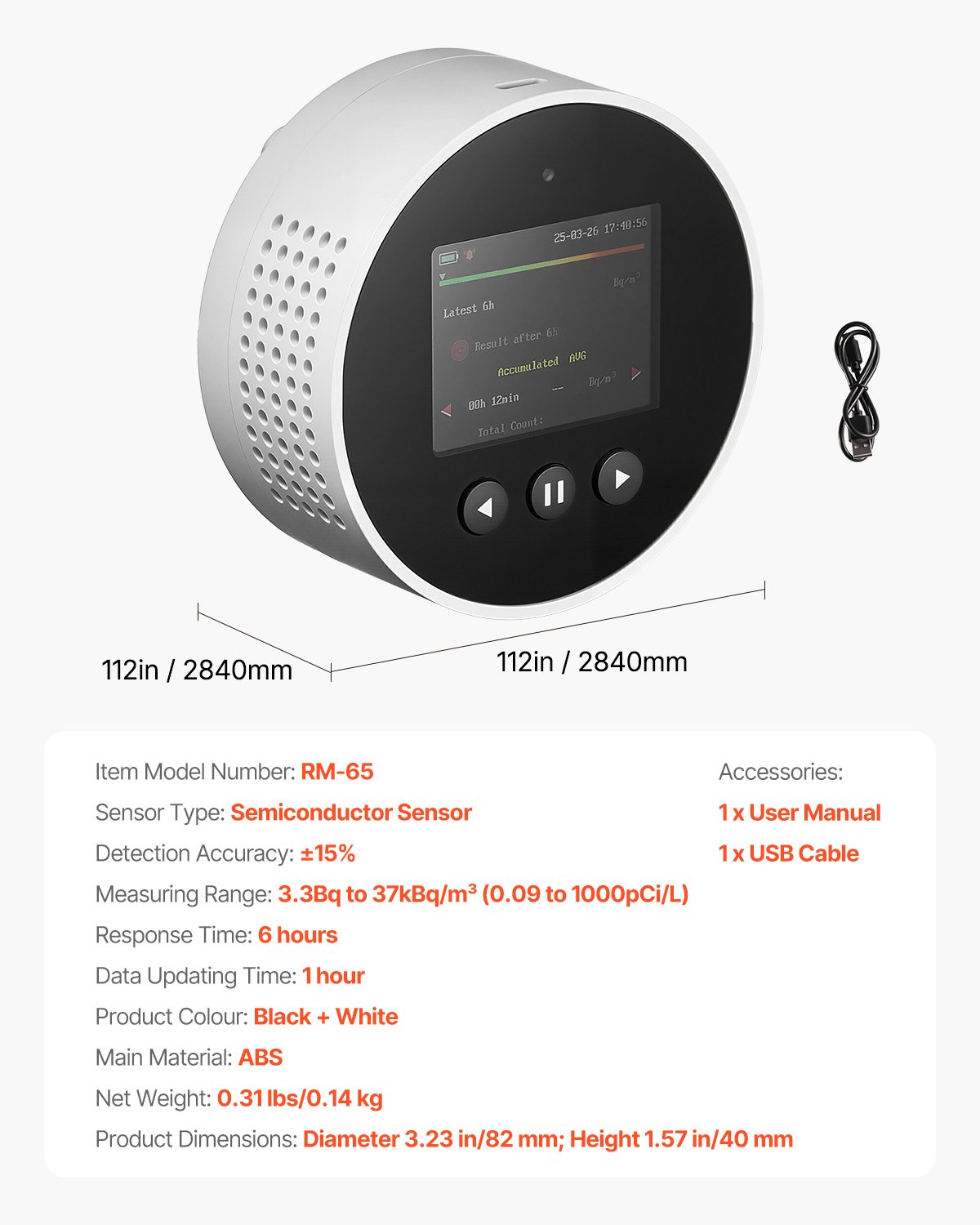 Radon Air Quality Meter Detector For Home 3.3Bq To 37kBq M Battery Powered