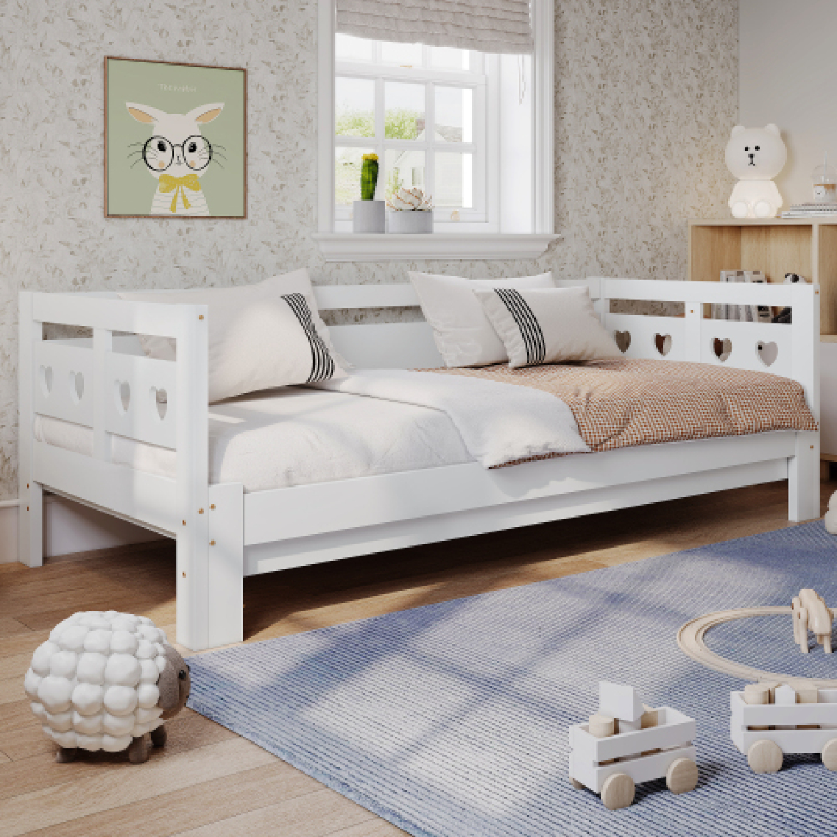 Product Name:Daybed Cabin Bed Wooden 3FT Single Sofa Guest Bed Sofa Bed, Pull out Trundle Wooden Bed Heart-Shaped For Children Adults Bed for Living Room and Bedroom -90 x190 cm -White