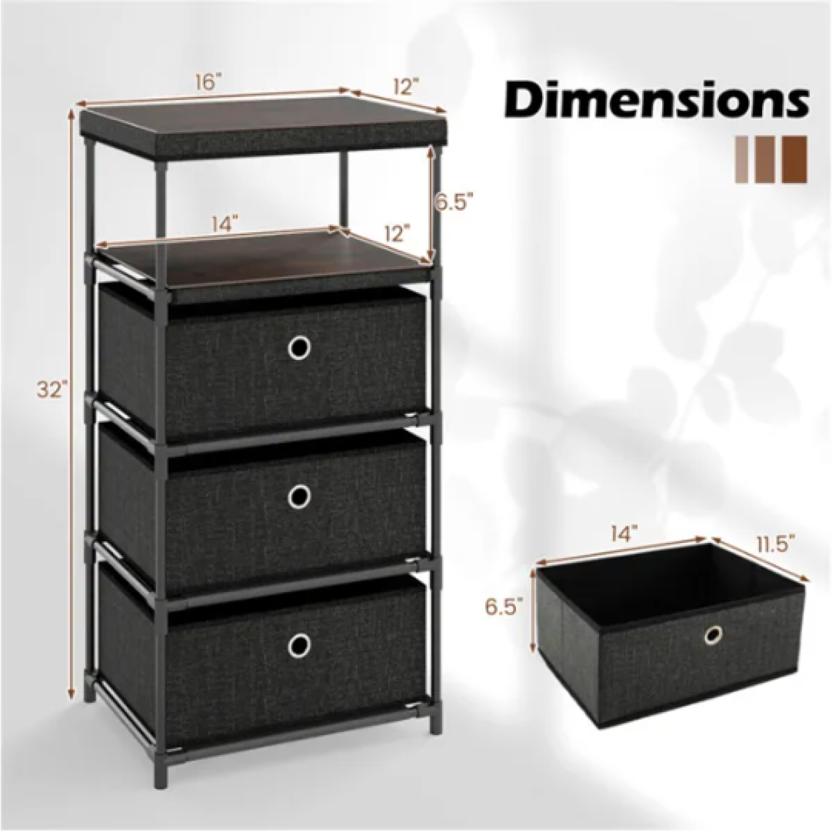 ● Industrial Wood Top: The fabric storage tower boasts an industrial wood top that combines delicate aesthetics with great longevity. This high-quality surface is easy to maintain, ensuring it stays in pristine condition for years to come.