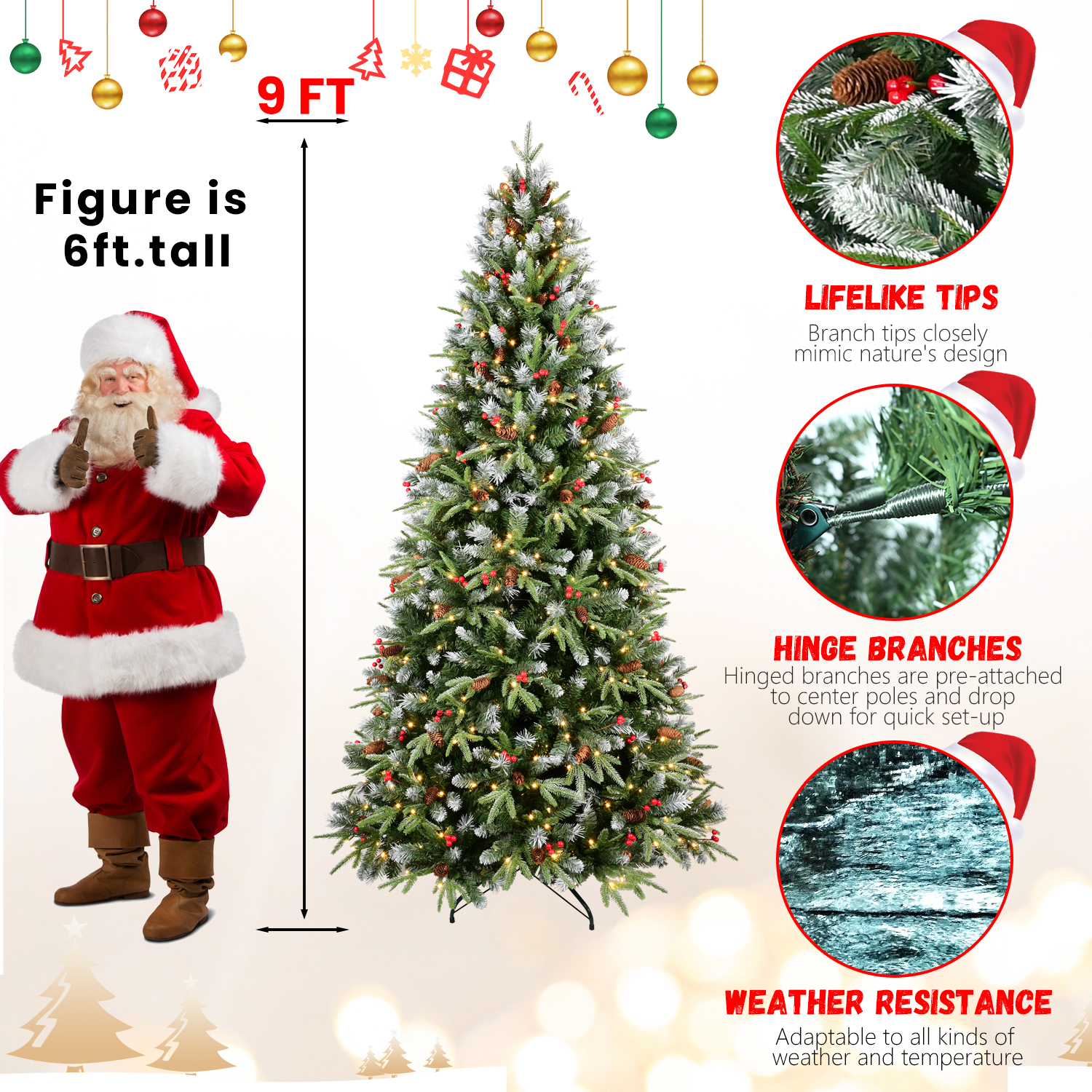 | 9ft PE/PVC tree Red fruit*111pcs Pine cone*111pcs |